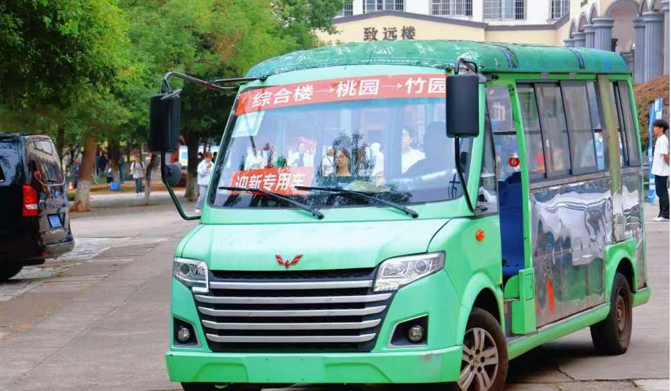 湖南科技学院迎新季,新生接驳车穿梭校园,“综合楼→桃园→竹园”的路线织就温情,致远楼旁树影婆娑,满是青春启航的鲜活气息。