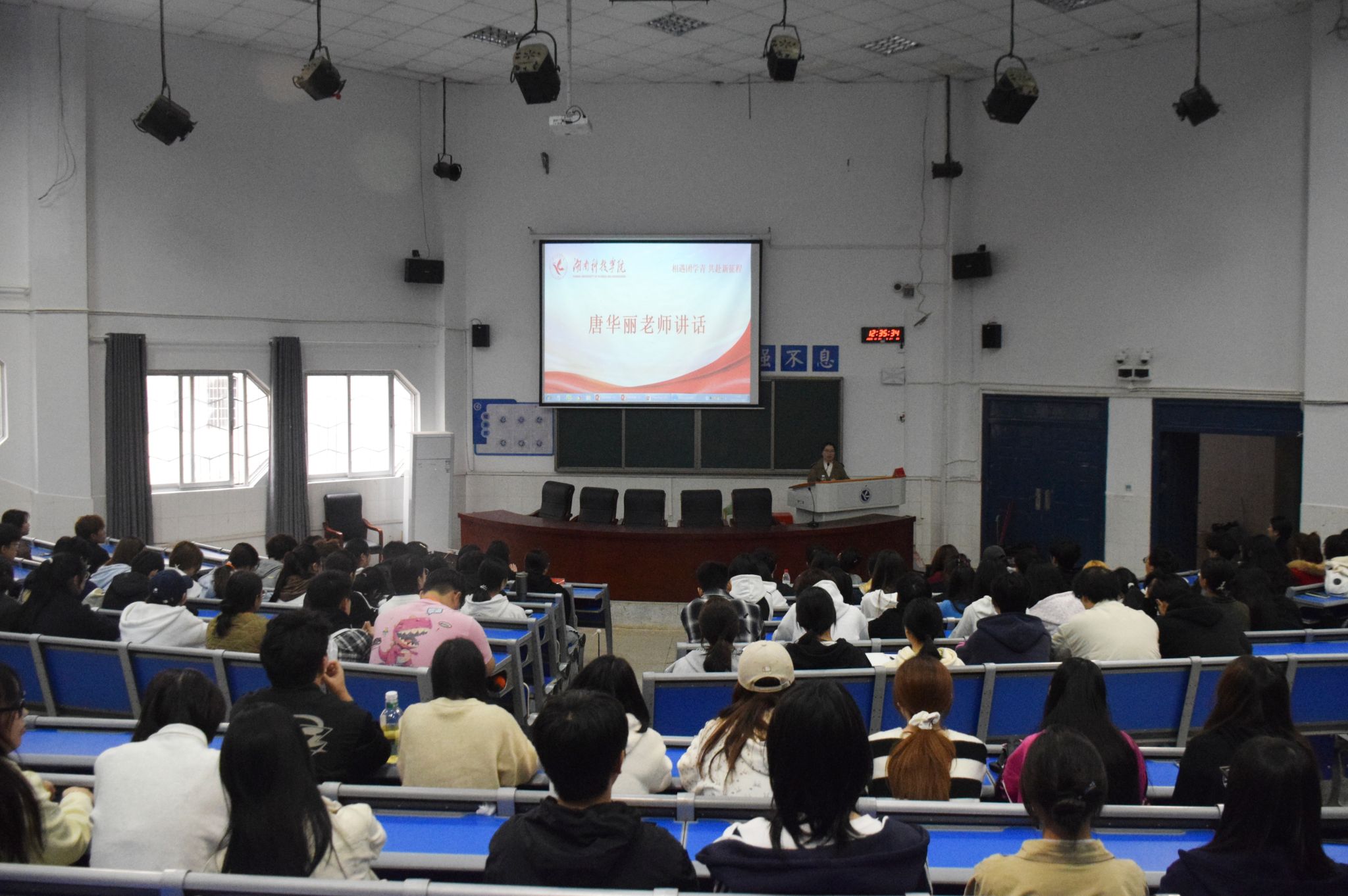 随后,唐华丽结合自身学生工作经历,从三方面与同学们交流分享:一是明确学生干部意义,强调学生干部是高校学生工作中的重要力量,是连接学校与学生的桥梁;二是找准角色定位,在学校审核评估的关键时期,学生干部要当好老师助手,带头遵守校纪校规,积极反馈同学诉求,规范网络行为;三是锤炼自身素质,学生干部要有责任心和奉献精神,不断强化大局观和政治素养,凝聚团队合力。