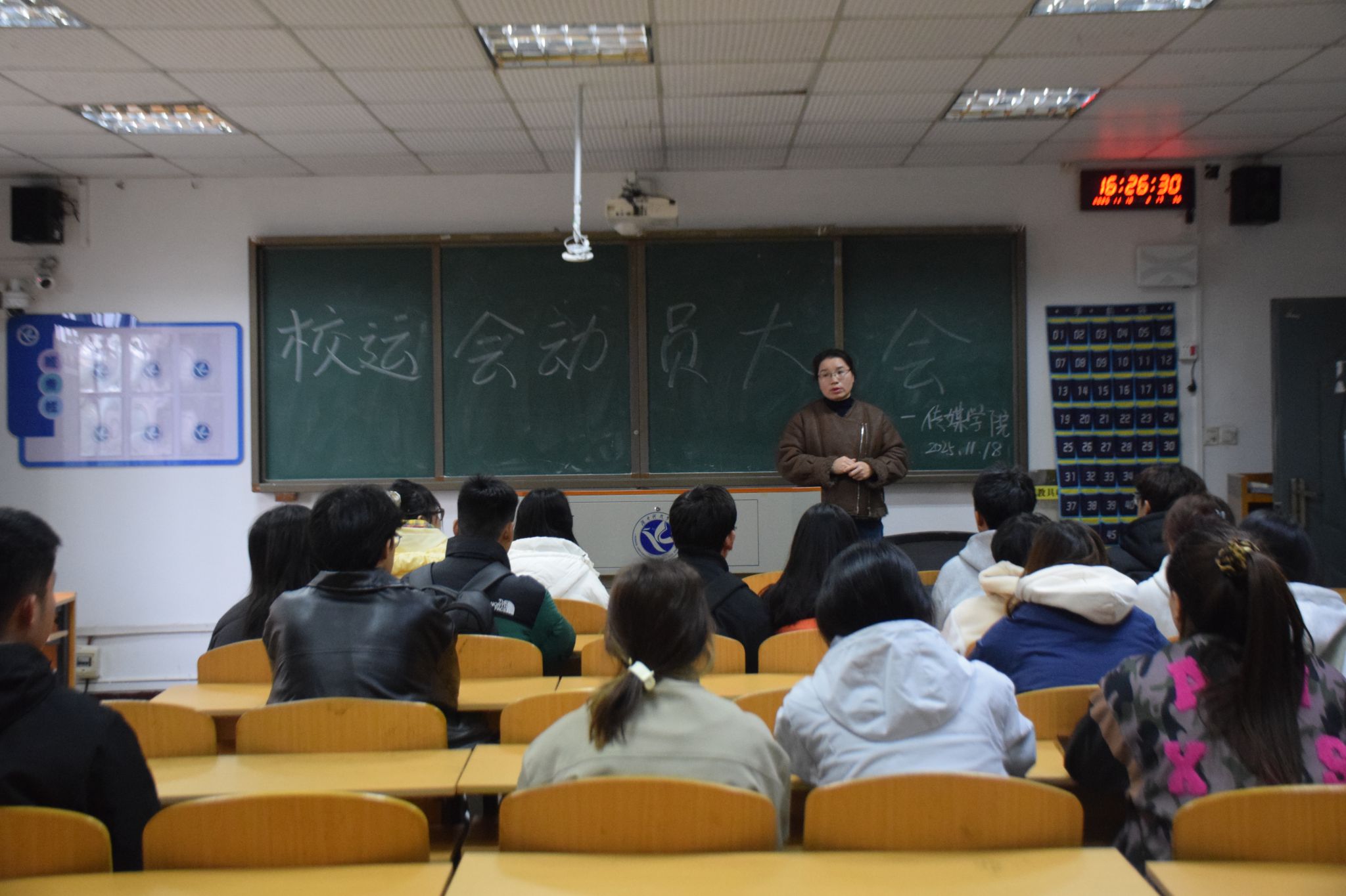 本网讯(通讯员 万书涵 赵瑞芝)热血燃赛场,拼搏展风采。11月18日午时,传媒学院于日新楼213召开校运会动员大会,旨在鼓舞士气、凝聚力量,确保校运动会顺利进行。传媒学院党总支副书记唐华丽、学工办主任谢娟、学工办副主任刘丽以及2023级辅导员屈豆豆出席会议,文体部工作人员和全体参赛运动员参加会议。