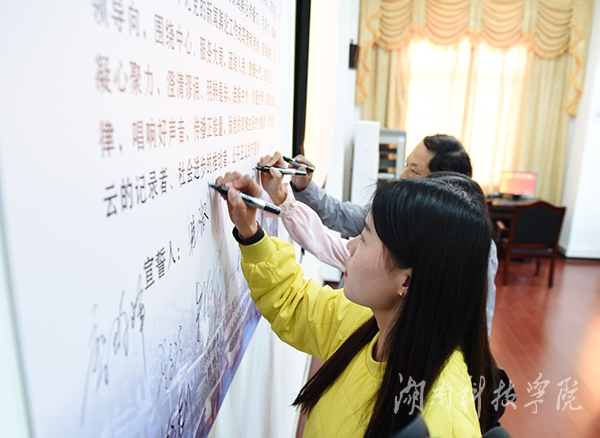 本网讯(摄影 何帅文) “我是一名新闻人,我将忠诚于党的新闻事业……做党的政策主张的传播者、时代风云的记录者、学校发展与社会进步的推动者、公平正义的守望者。”3月2日,在学习习近平总书记关于新闻舆论工作讲话精神座谈会上,校党委副书记唐艳明带领党委宣传部、各直属党组织宣传委员及传媒学院师生代表庄严宣誓并签名。