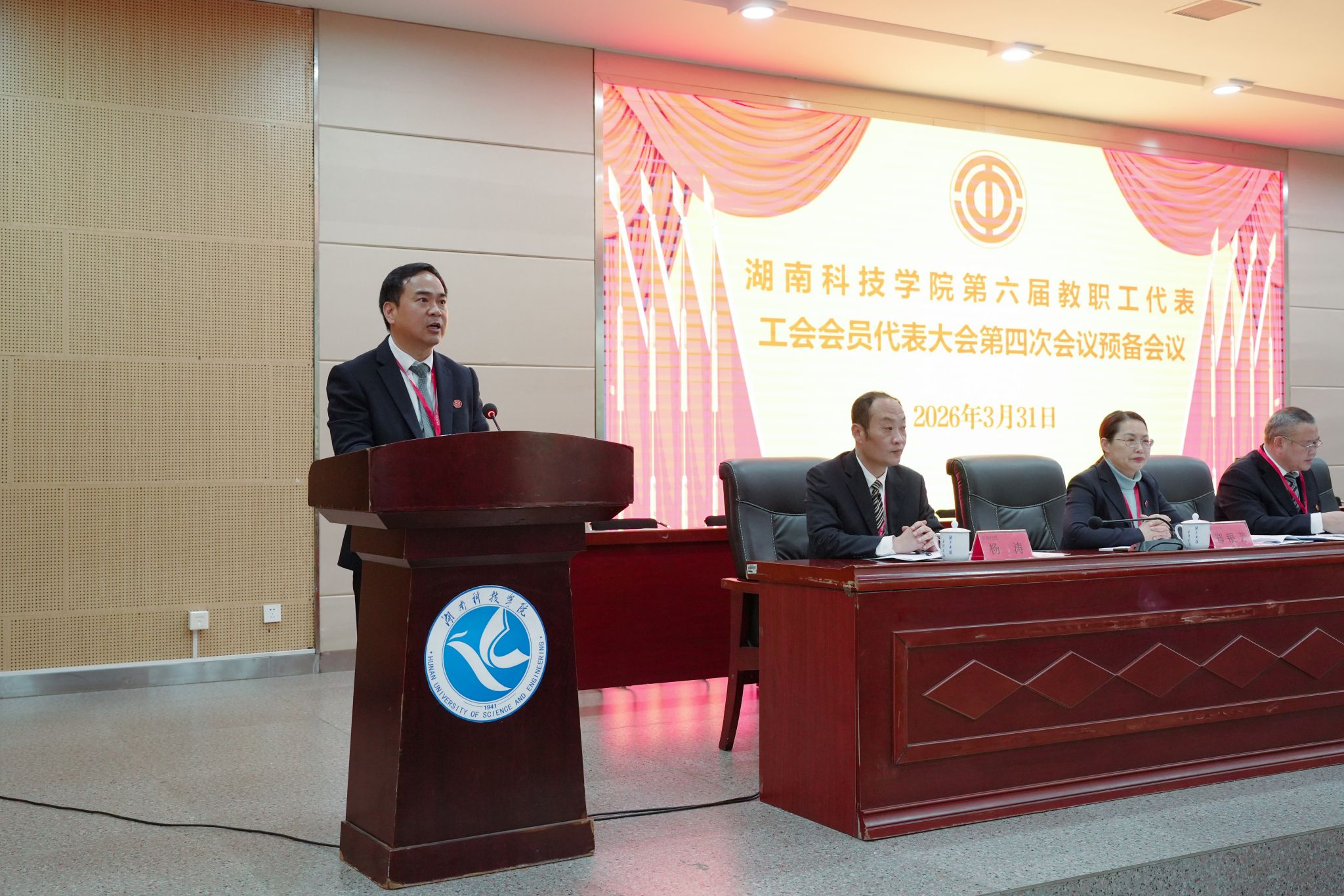 副校长曾炜以书面形式作《湖南科技学院“十五五”事业改革与发展规划纲要》,党委委员、副校长何海以书面形式作《湖南科技学院2025年财务预算执行情况和2026年财务预算安排报告》,党委委员、副校长、工会主席李常健作《湖南科技学院工会工作报告》,第六届工会经费审查委员会主任周昕以书面形式作《湖南科技学院工会经费审查工作报告》。