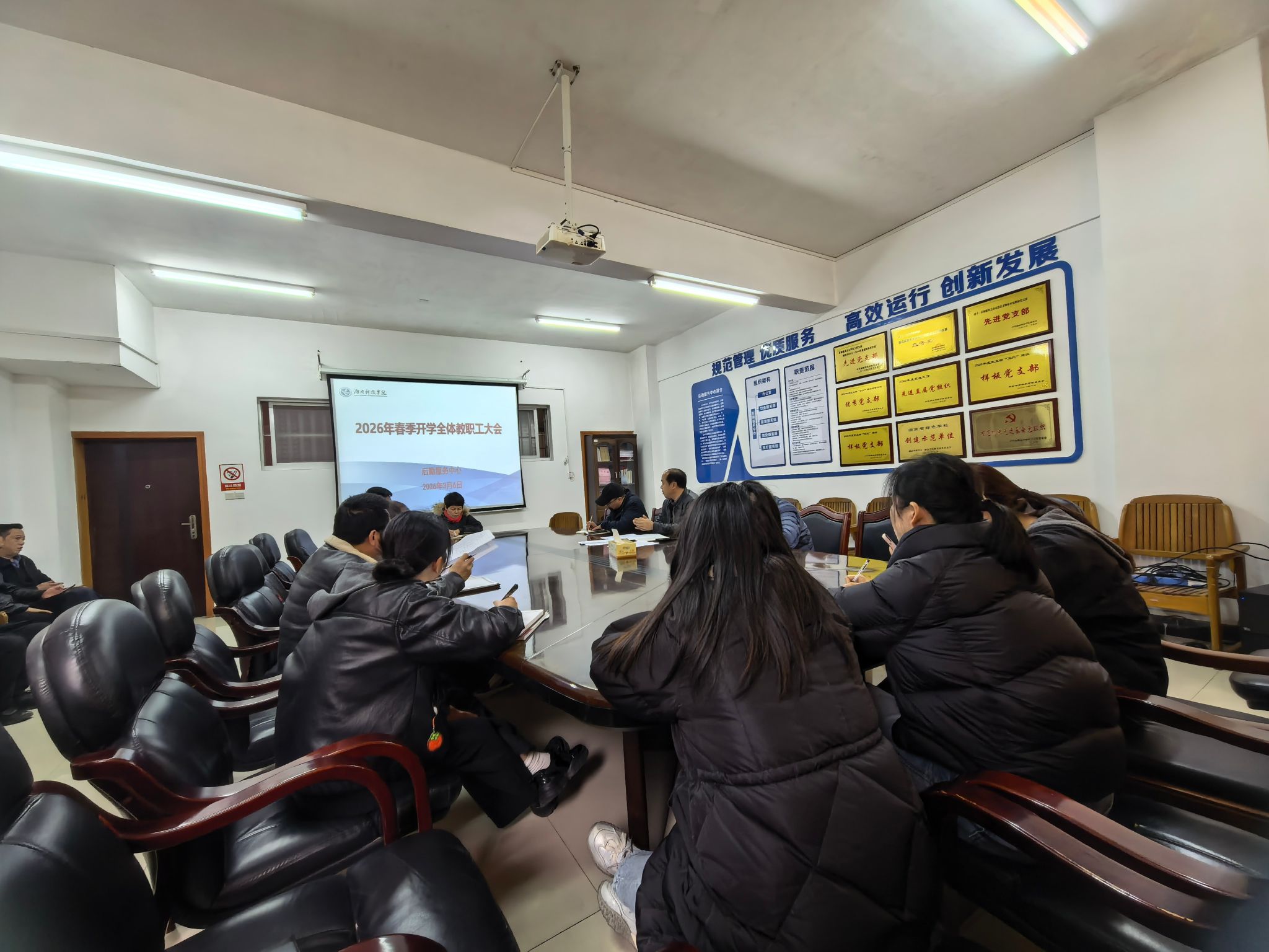 本网讯(通讯员 廖家艺)3月6日,后勤服务中心召开2026年春季教职工大会,会议由后勤服务中心主任刘东方主持,全体教职工参会。