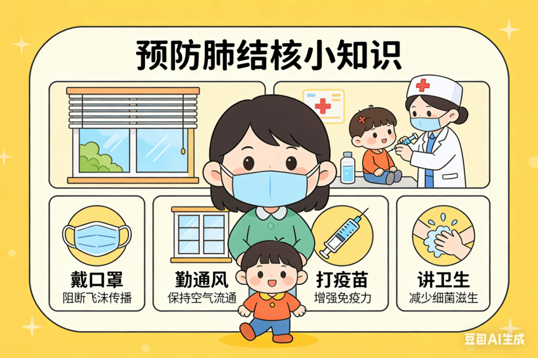 科学预防是关键。口罩可以减少肺结核的传播。少去人员密集不通风的场所,如网吧、歌厅等。