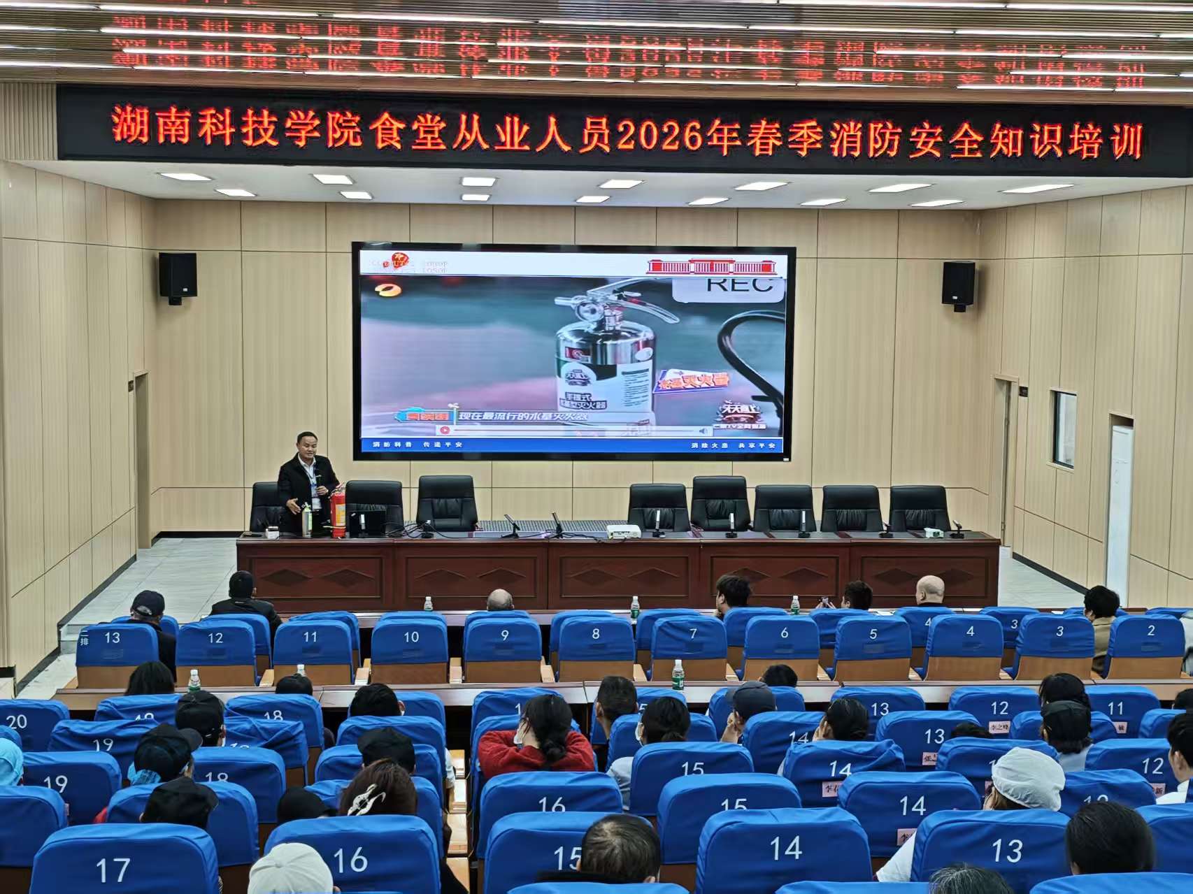 为切实加强校园食堂消防安全管理,强化从业人员安全防范意识与应急处置能力,筑牢校园安全防线, 3 月 12 日下午,饮食服务部在明德楼 100 室组织开展2026 年春季消防安全知识专题培训,学校全体食堂从业人员参加培训。
