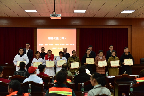 会上,公司党总支书记贺幸福宣读了关于表彰后勤服务总公司优秀党员示范岗和后勤服务之星的决定,出席大会的领导共同为受到表彰的2名党员示范岗和37名服务之星个人颁发了荣誉证书。松园食堂何瑛作为服务之星代表做了发言,她对学校领导和公司领导的信任和支持表示了感谢,在今后的工作中将更加脚踏实地、严谨细致、积极乐观,更真诚的微笑提供餐饮服务,为学校后勤事业发展贡献自己的微薄之力。