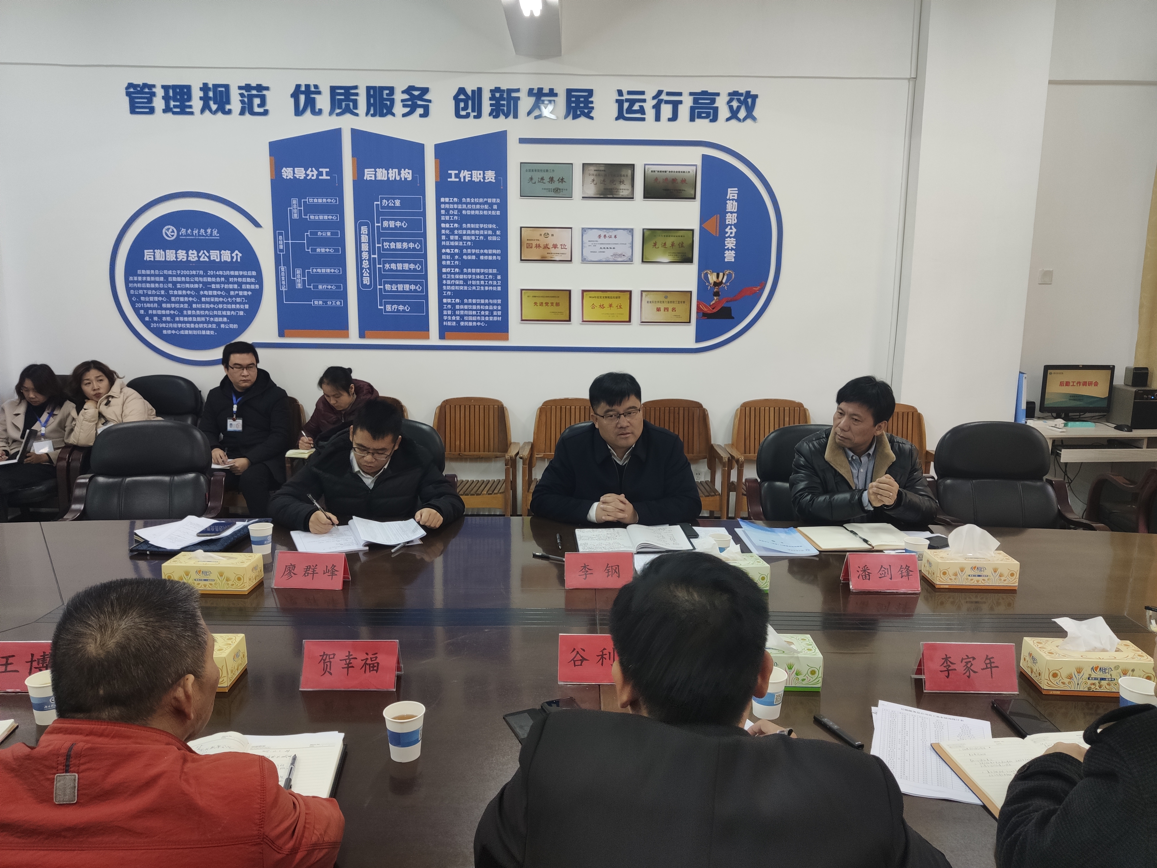 12月2日上午,校长李钢带领发展规划处处长潘剑锋、党政办秘书廖群峰等深入后勤服务总公司就后勤工作进行调研,后勤服务总公司全体干部、职工代表20余人参加会议,调研会在行政楼212会议室召开,会议由潘剑锋主持。