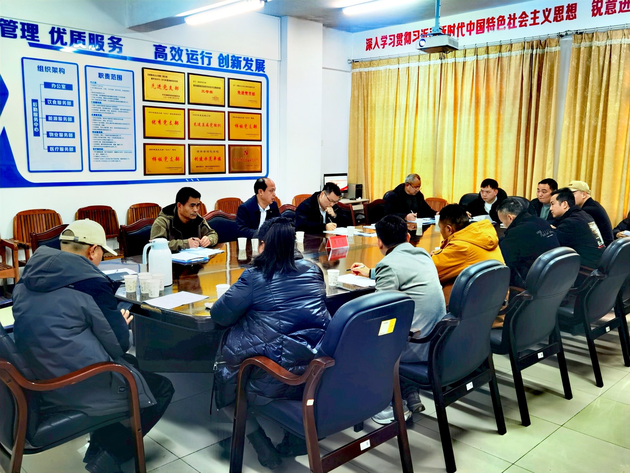 接着,各食堂项目经理通报寒假整改和开学准备工作进展情况,各配送公司、超市和便民服务中心负责人通报春节开学准备工作进展及存在的困难和问题。