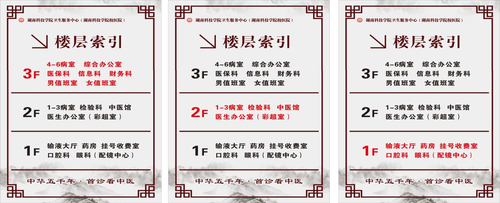 中医理疗科、口腔科、眼科、内科、儿科、中医科、皮肤科、检验科、放射科、彩超室、心电图室。