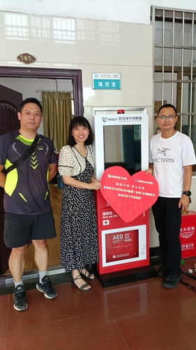 校园布设AED是深入贯彻落实习近平总书记关于“始终把人民群众生命健康放在第一位”重要指示的具体体现,是落实教育部、教育厅“健康校园”建设工作的重要举措,更是一件惠及全校师生的大实事。后期我校将在永州市(区)红十字和当地医疗机构的指导下建立完善的急救培训体系,实现“人人学急救,人人懂急救”把生命救治的基础性工作真正夯实到位,最大程度地保障师生健康。