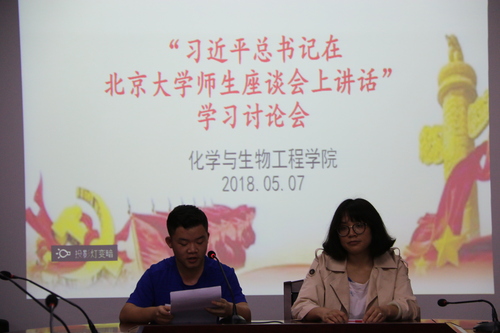 本网讯(通讯员 周闻名 李劲)2018年5月7日下午,化学与生物工程学院在逸夫楼320召开团学干部会议,深入学习习近平总书记5月2日在北京大学师生座谈会上学习交流会。学院党总支书记赵雨云、副书记高丹、全体辅导员及所有团学干部共60余人参加,会议由分团委书记周闻名老师主持。
