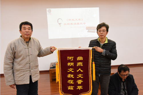 据了解,国学院参与《燕赵文库》一部分撰著、组稿工作,承担《燕赵文化》、《四库全书考证》、《白眉初中华民国省区全志》、《王余佑集》、《灰画集》等多种研究著作、历史文献的编撰,并且荣获《燕赵文库》编辑出版委员会赠送全部图书一套。其中张京华教授所著《燕赵文化》一书,辽宁教育出版社1995年第1版,1998年第2版,“中国地域文化丛书”24种之一,是改革开放以后第一部以“燕赵文化”为主题的研究著作。近年张京华教授又在《河北学刊》发表《作为一种生命价值观的燕赵文化精神》,在《中华读书报》发表《“燕赵文化”概念界定的要点》,点校出版王余佑《五公山人集》,对“燕赵文化”概念表述作出了开创性的工作。因此应邀在“燕赵文化精神理论研讨会”作主题发言,《燕赵文化》第3版列入《燕赵文库》第一批书目。