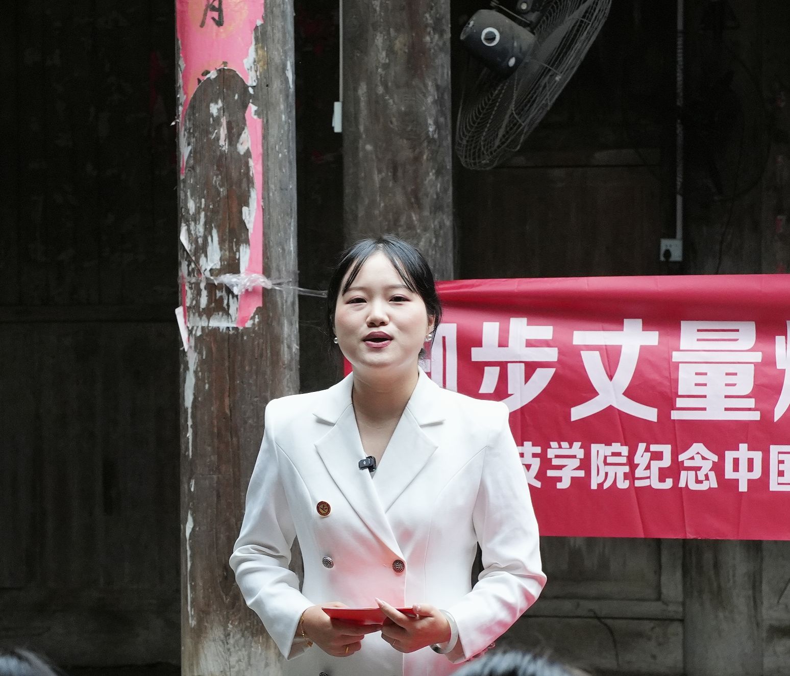 80岁的特邀嘉宾黄志富老人告诉师生们,八十年前,他的父亲黄德昌先生,正是在这座作为临时校舍的祠堂里,为“湖南省立第七师范学校”的学子们传道授业。八十年后,他的孙女黄俊芳——外国语学院英语师范专业的一名大四学生,即将踏上讲台,接过接力棒。这段特殊的家族传承,成为校史的生动注脚。