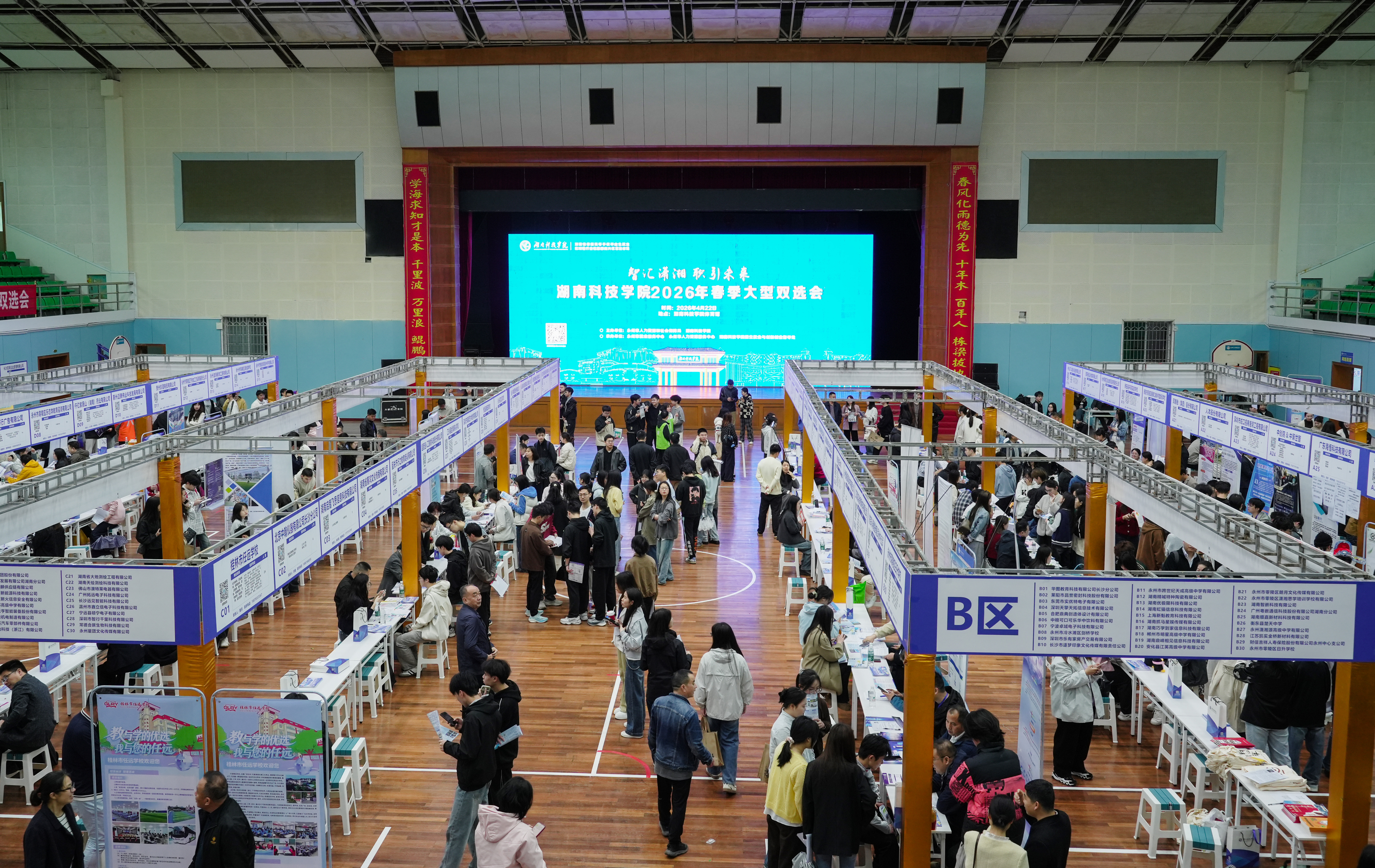 湖南日报·新湖南客户端4月22日讯(通讯员 蔡汝佳 谷利梅 向薛峰)4月22日上午,湖南科技学院2026年春季大型双选会顺利举行,该校党委书记黄创霞出席活动,各教学学院相关负责人、2026届毕业生辅导员参加活动,吸引2800余名毕业生入场求职,现场接收简历1791份。