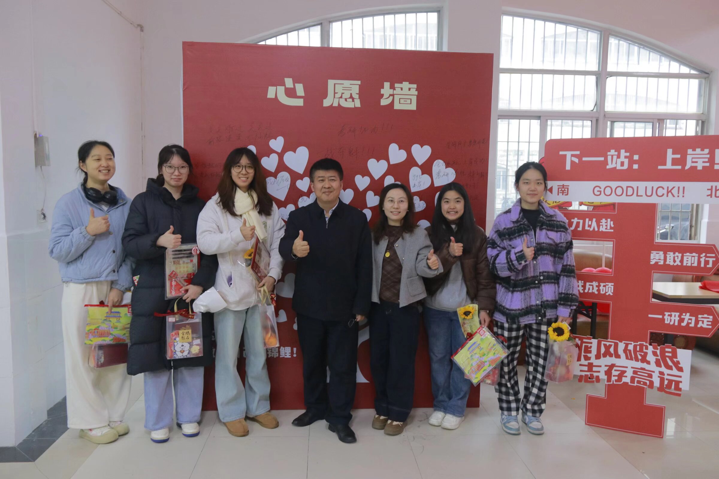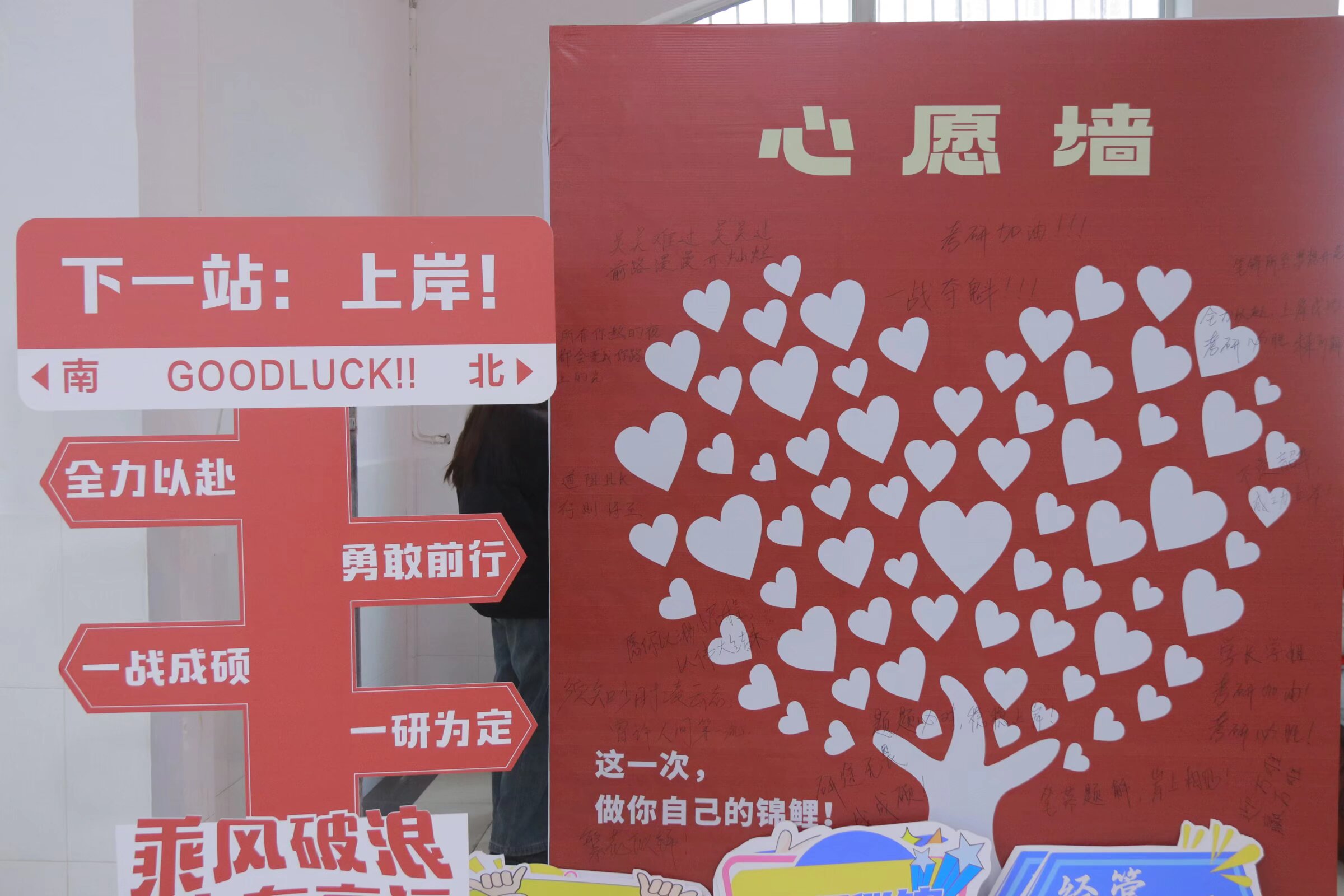 “从晨光熹微到星光满天,你们在图书馆、自习室的每一份坚持,都是青春最动人的模样。”活动现场,学院领导的考前叮嘱直抵人心,送上“一战成硕”的祝福,台下掌声与欢呼声此起彼伏,备考的紧张感被浓浓暖意悄然化解。