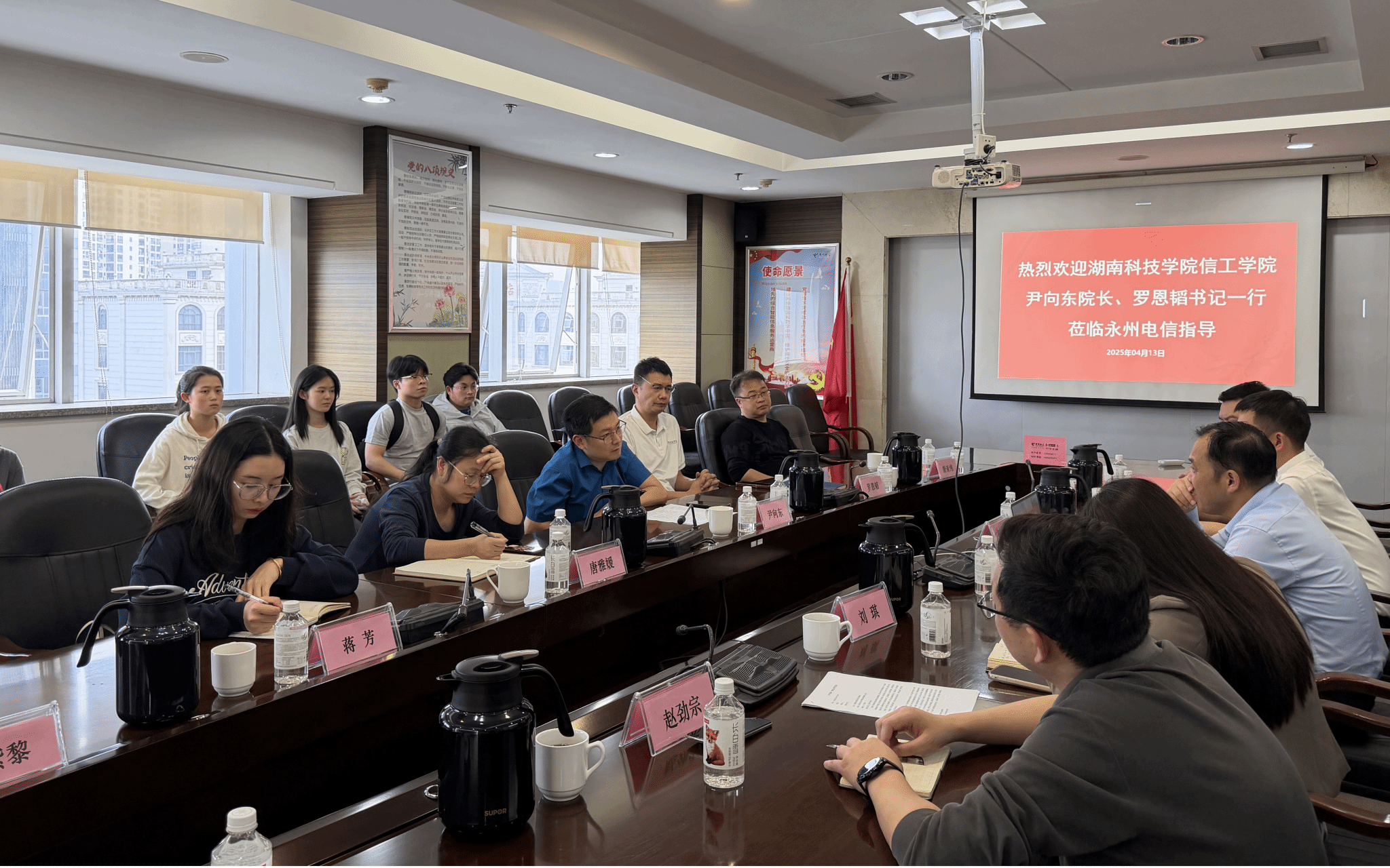 交流座谈会上,何月春对学院师生一行表示热烈欢迎,详细介绍中国电信永州分公司发展布局、技术创新成果及人才需求规划,期待与学院在实习就业、人才培养、科研合作等方面开展更深层次合作。