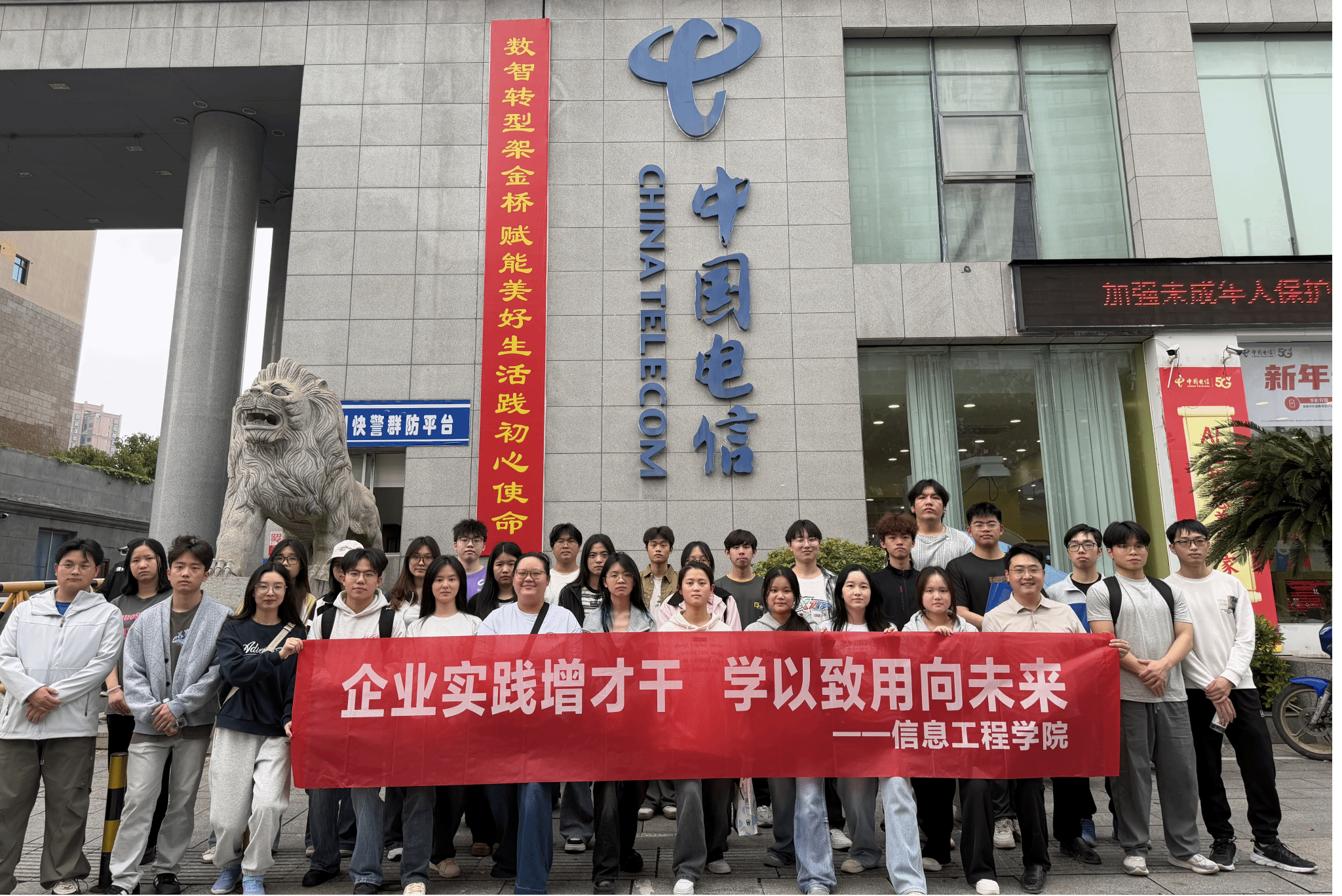 本网讯(通讯员 欧文富 吴秋云)为深入推进产教融合、校企协同育人,4月13日,信息工程学院组织通信工程、计算机科学与技术、数据科学与大数据技术、人工智能、软件工程五个专业共30余名优秀学生,前往中国电信股份有限公司永州分公司开展专业见习活动。中国电信永州分公司总经理裴易、副总经理何月春,学院相关负责人等参加活动。