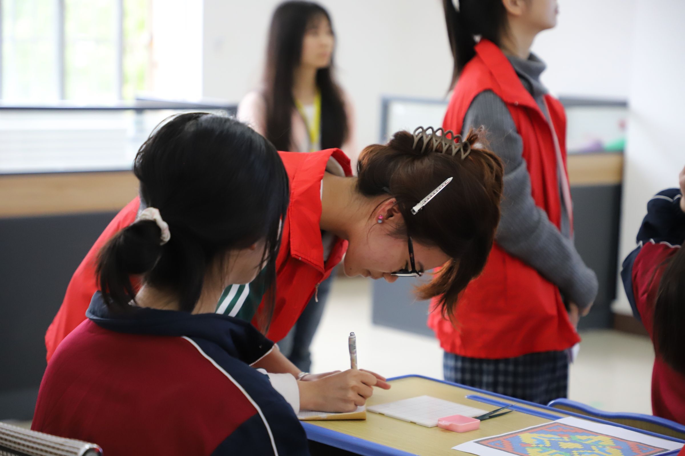 本网讯(通讯员 周婉婷 邹一鑫 李雨桐)4月16日,经济与管理学院联合瑶绣潇湘工作室走进永州市特殊教育学校,开展“绣韵童心·无声绘梦”瑶绣非遗拼豆公益体验活动。