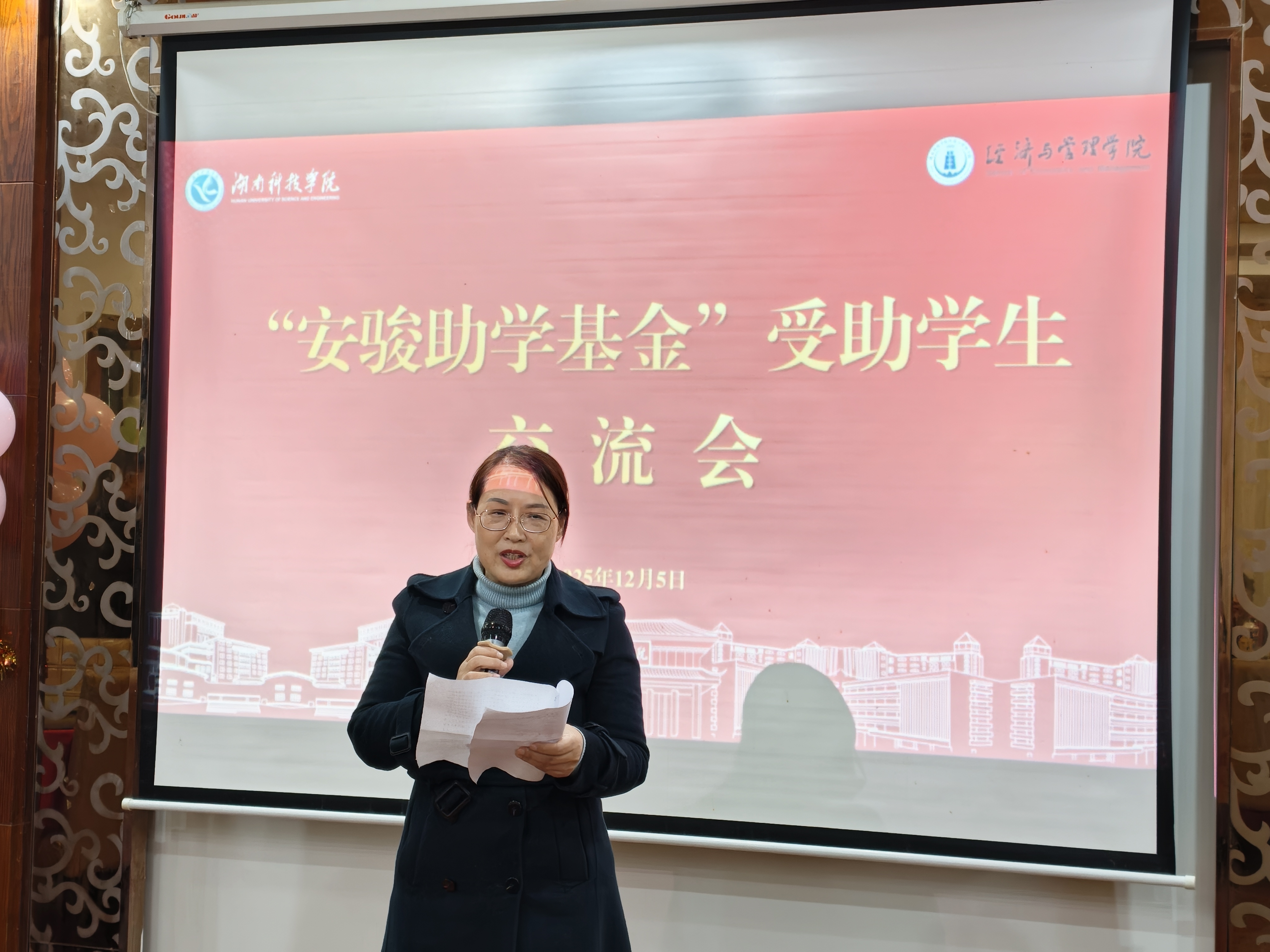 本网讯(记者 谷利梅)12月5日,经济与管理学院举行“安骏助学基金”受助学生交流会。副校长郑银芳,2002届优秀校友、深圳市安骏物流有限公司董事长方轲出席会议。校友联络中心主任谭德修,经济与管理学院院长周芳检,党总支书记袁岳驷,学院党总支副书记彭涛凯,全体辅导员及受助学生代表参加会议。