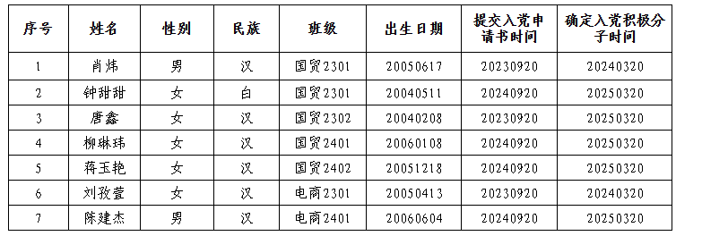 经支部大会讨论,拟将肖炜等7名同志列为2026年上学期党员发展对象。根据发展党员工作有关要求,现将有关情况公示如下: