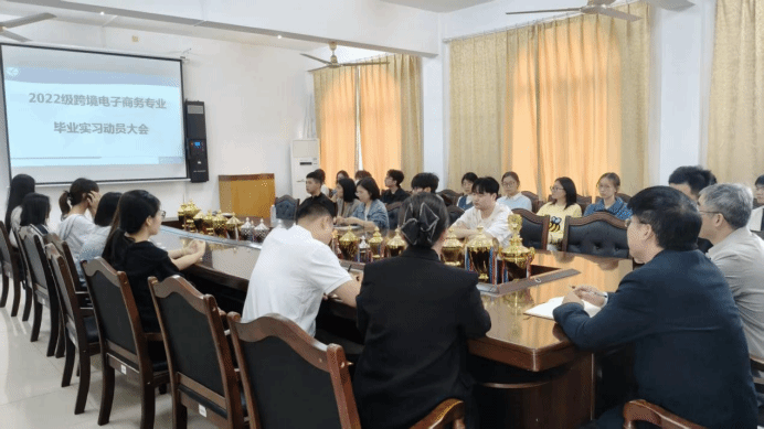 为扎实推进毕业实习工作,引导学生明确实习目标、提升实践能力,2022级跨境电子商务专业于近日在学院会议室隆重举行毕业实习动员大会。学院领导及22级辅导员、就业实习专干等出席本次会议。大会由电子商务系主任王慧主持。