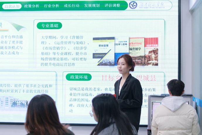 大赛现场气氛紧张而热烈,多位参赛选手结合专业所学与个人兴趣,通过详实的数据和清晰的逻辑,全方位展示了各自的职业梦想与实践蓝图。他们的陈述或充满激情,或理性睿智,充分体现了当代大学生对未来的深刻思考与主动规划意识。