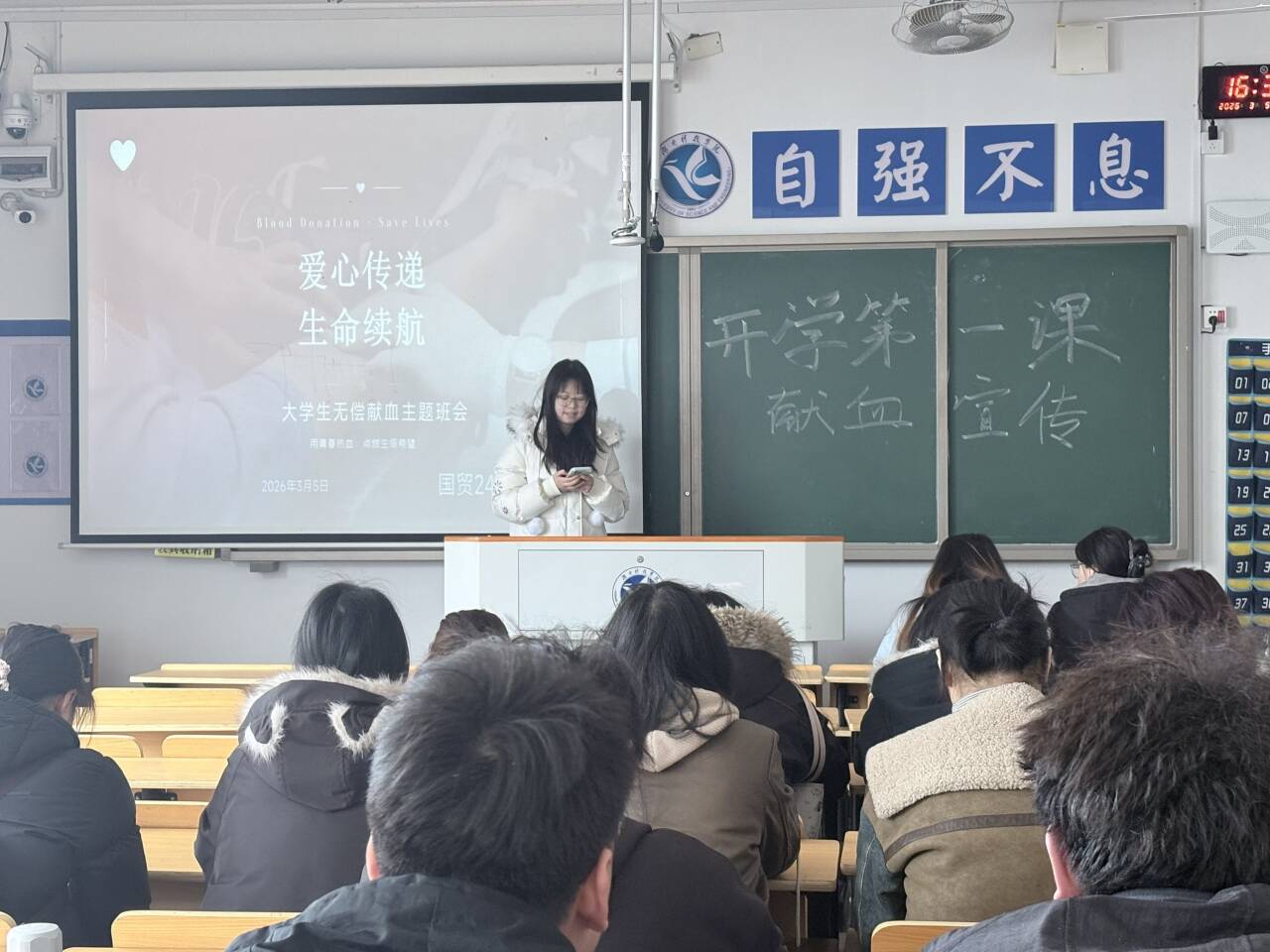 为弘扬奉献精神、普及无偿献血知识,湖南科技学院经济与管理学院于3月4日在各班教室开展无偿献血主题班会并于3月4日及7日开展现场献血活动。