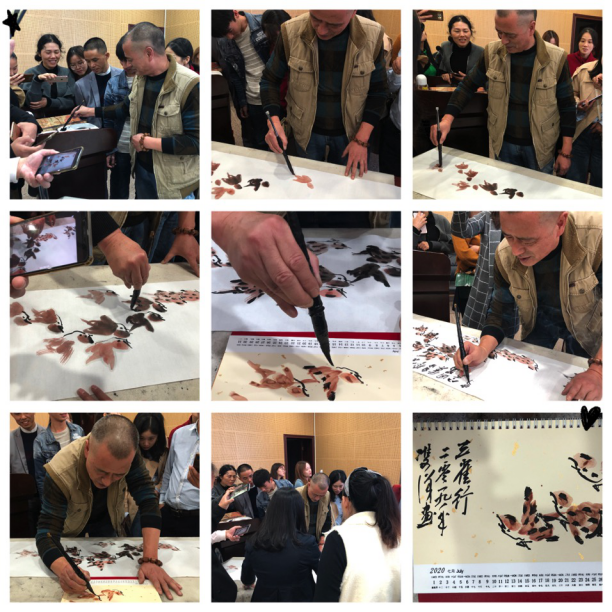 23日上午是高双洋画家的中国画技法与鉴赏(写意山水与花鸟)讲座,高老师给我们介绍了他的作品并和学员们分享了自己几十年的书画创作经验与体会,高老师在分享中一直强调中国传统文化(儒家思想中的孔子文化、佛教思想中的真善美以及道教思想)对书画创作的影响与启发,高老师指出“功夫在画外,写意有内涵”我们书画创作要力求做到画中画、画外有画,高老师还劝诫大家要提高自身的艺术修养,指出艺术修养修什么?就是修我们的思想层面。讲座之余,高老师现场即兴给大家创作了一幅国画作品《旷野情趣》,让