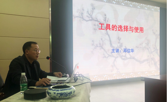 24日下午首先邀请了邓位华老师与大家分享《正确选择文房四宝》的讲座,邓老师从笔墨纸砚四个方面对书法材料与工具的选取做了详细的分析,讲座结束后邓老师也为学员们做了现场示范,邓老师示范的是隶书。
