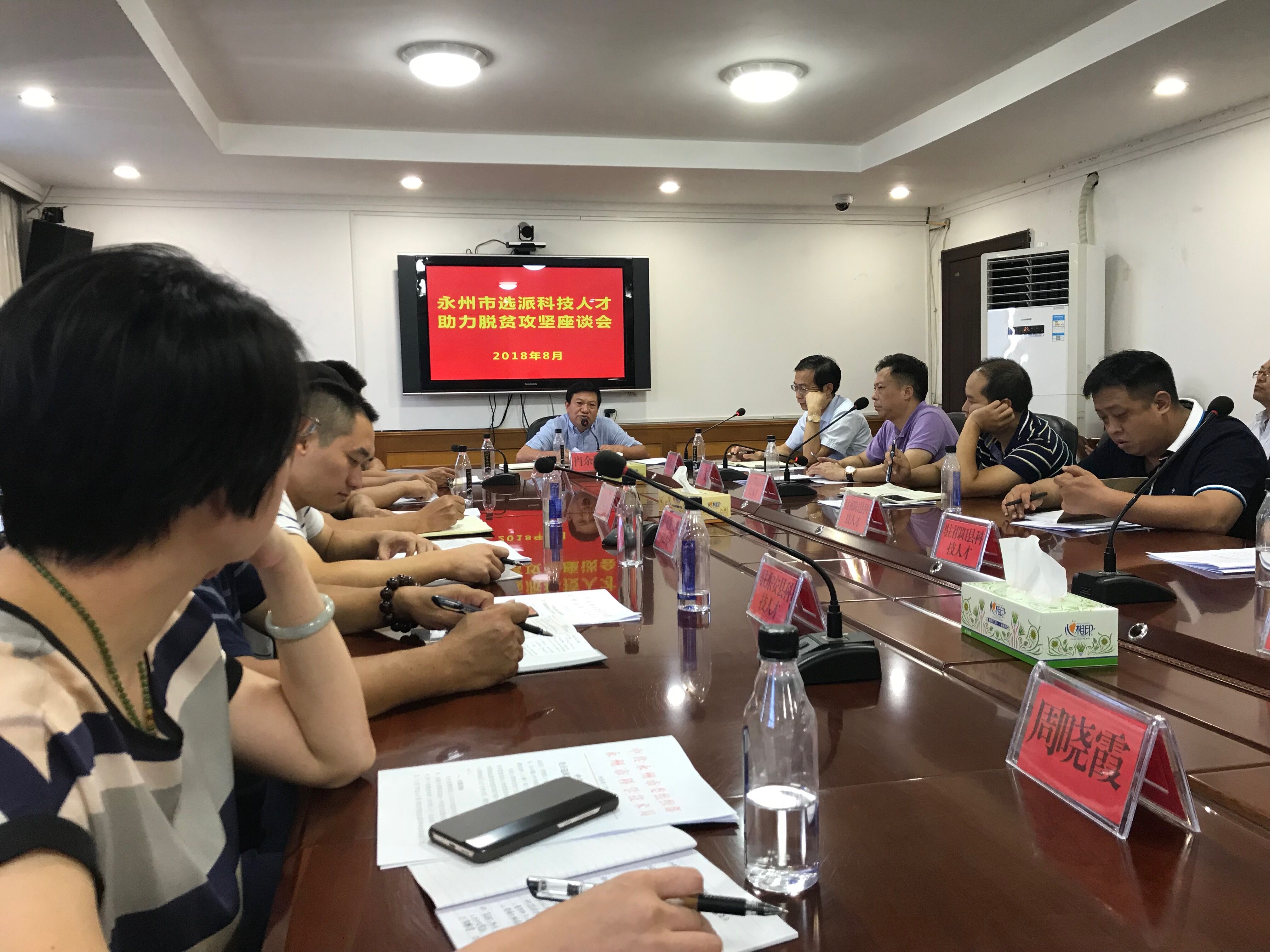 本网讯 8月24日,永州市2018年科技人才助力脱贫攻坚座谈会在冷水滩召开。会议由市委组织部副部长肖余胜主持,市科技局、各县区党委组织部相关负责同志和科技人才代表参会。