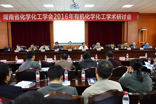 本网讯  10月29日上午,湖南省2016年化学化工学会有机化学化工学术研讨会在我校行政办公楼八楼一会议室举行。湖南省化学化工学会有机化学化工专业委员会主任俞宁亚,湖南省化学化工学会第十一届理事会副秘书长刘昱霖,我校副校长郑山明、正校级督导袁先友等出席。来自全省27所高校、江西省九江学院和省化工行管办等单位的90余名专家代表参加会议。会议由袁先友教授主持。