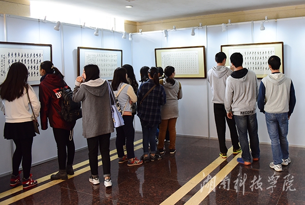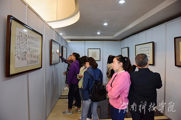 本网讯(记者 孙艳丽 裴滢)11月4日上午,欧小松教授“毛泽东诗词”女书书法作品展在行政办公楼一楼大厅举办。校党委书记陈弘,副校长宋宏福、李常健及 及永州文艺界、理论界代表及媒体人士等出席。
