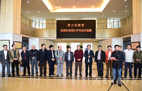 本次展出旨在推进地方优秀传统文化传承与创新,大力营造文化育人的浓厚氛围,由科技处、图书馆、宣传部、教务处、工会等单位主办,永州市开图文化传播有限公司承办。欧小松教授共精选了毛泽东诗词五十一首参与此次作品展,每幅都雍容华贵,精巧雅致。
