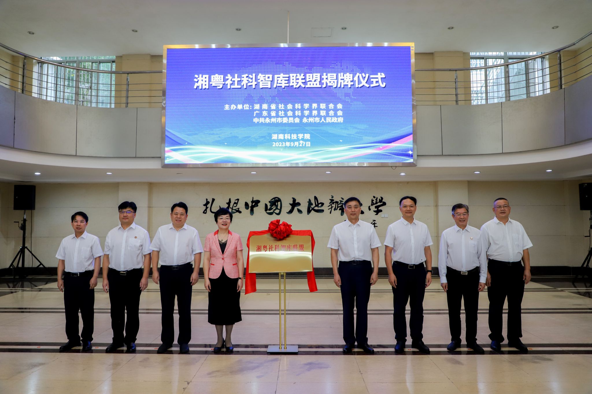 2023年9月,“湘粤社科智库联盟”在学校挂牌成立,2025年11月,成功入选湖南省委宣传部第二批省级专业特色智库,成为服务湘粤区域协同发展的重要智力载体。