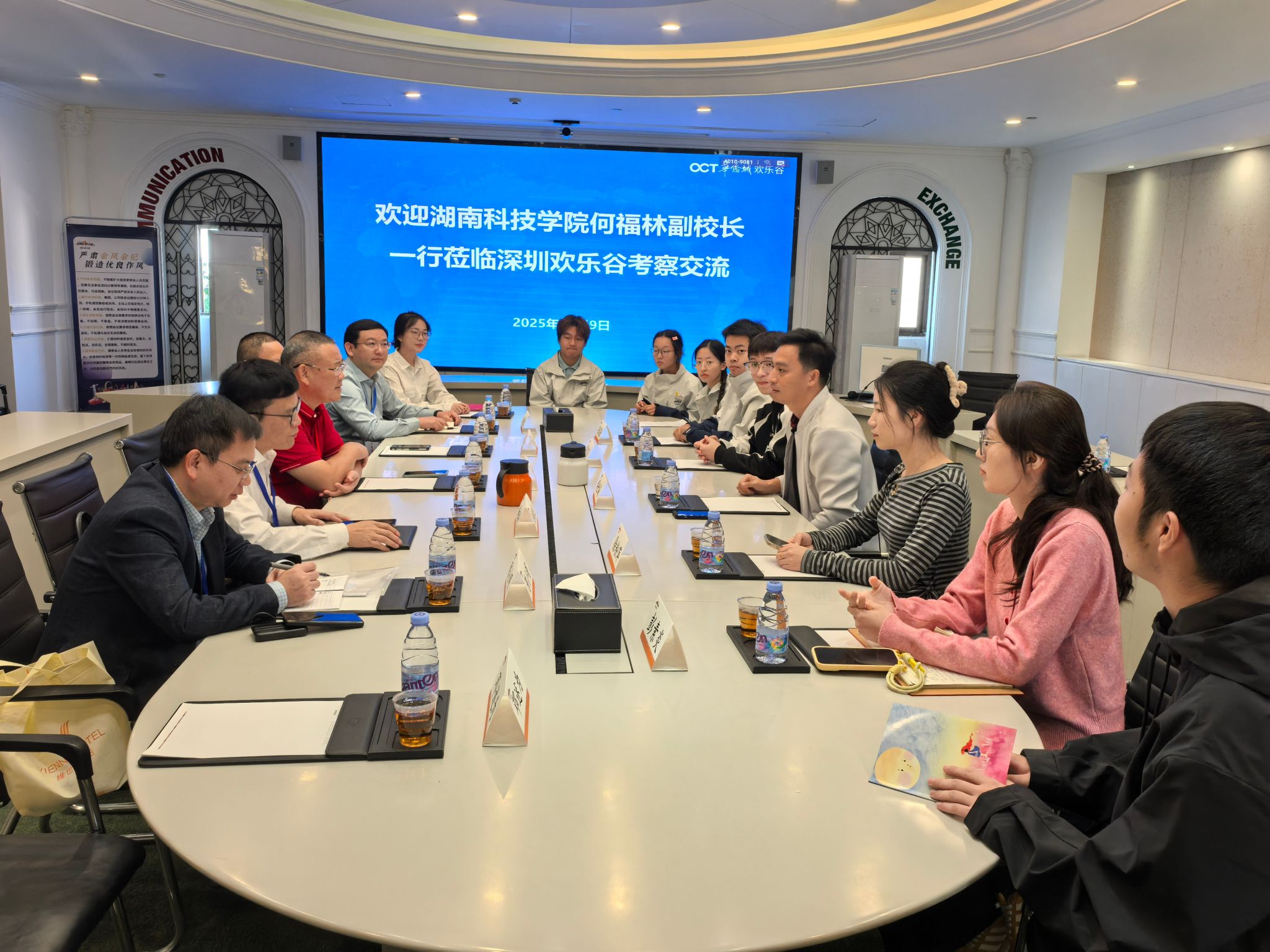 考察组一行深入园区,深入了解园区运营现状和学生实习状况、生活保障,学习公司在主题公园运营产品研发及产业创新方面的先进经验。座谈会上,实习学生代表们踊跃发言,分享了从校园课堂到实践岗位的转变历程、技能提升的点点滴滴以及克服挑战后的成长喜悦。同学们纷纷表示,欢乐谷公司提供的系统培训和一线实战机会,让他们不仅深化了对专业知识的理解,更锻炼了沟通协调、应急处理和团队协作等综合能力。