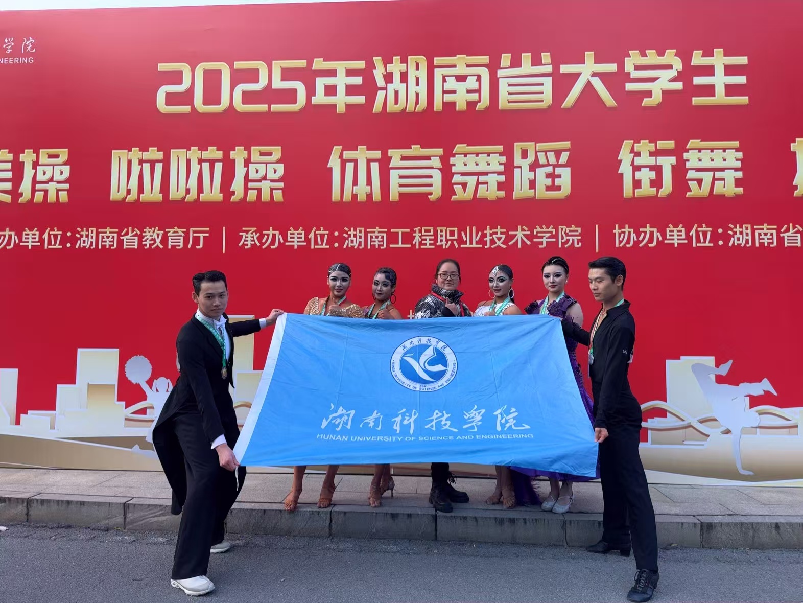 本网讯(通讯员:刘雅欣)近日,由湖南省教育厅主办、湖南工程职业技术学院承办的2025年湖南省大学生体育舞蹈比赛圆满落幕。湖南科技学院旅游与文化产业学院学子在比赛中表现卓越,凭借扎实的功底、默契的配合与富有感染力的表演,从众多高校选手中脱颖而出,斩获多项大奖。