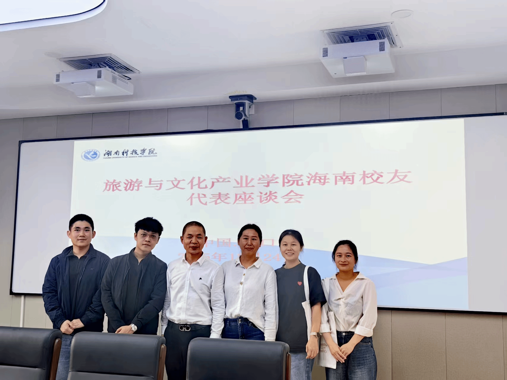 为了进一步宣传我省校友回湘政策、加强校友联系,副院长姚先林、旅游管理系主任李晓红一行近期前往海南走访校友。2025年12月24日上午,姚先林一行与海南校友代表在海口座谈。