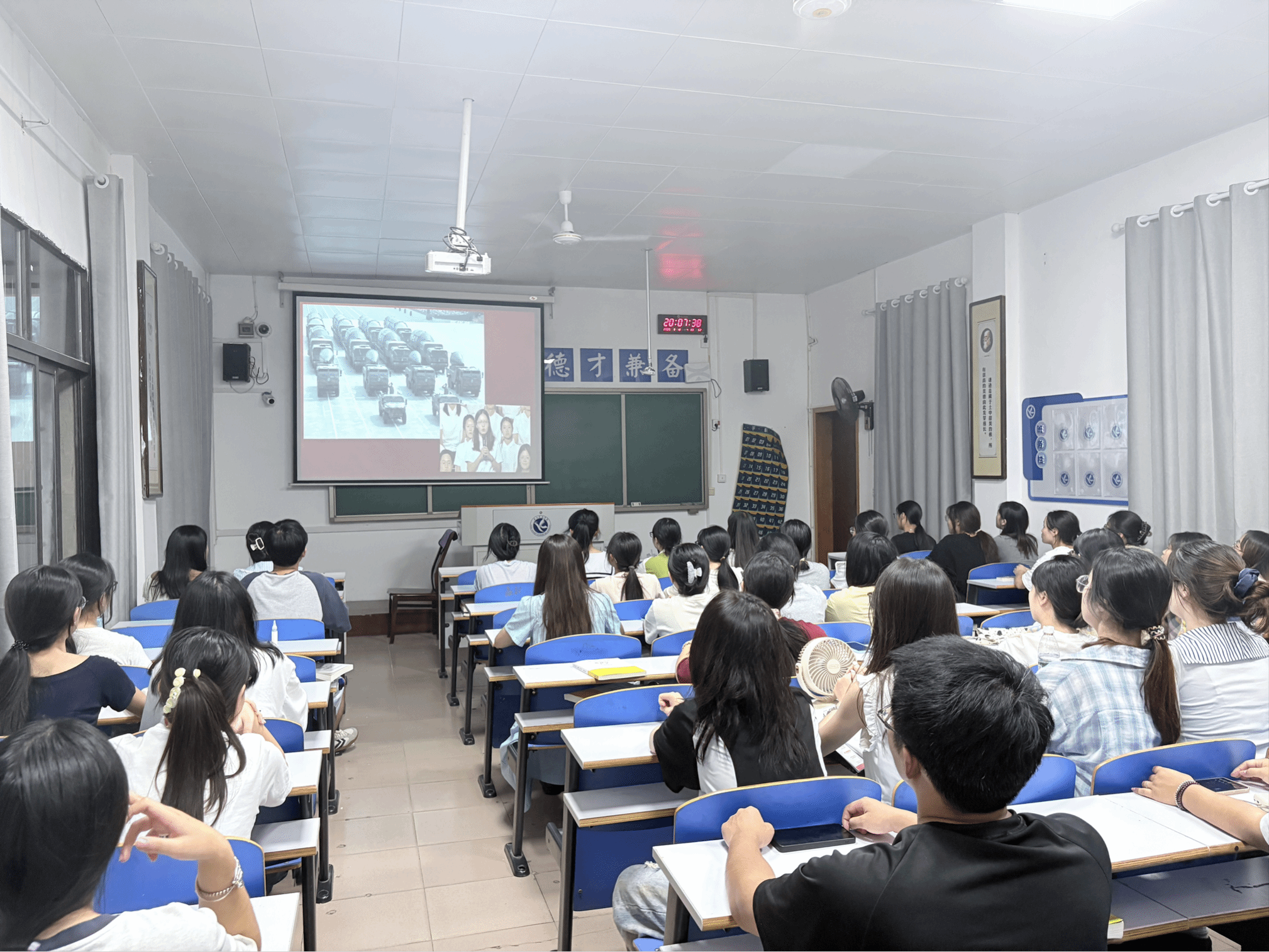 《烽火学脉》把目光投向抗大、西南联大、湖南大学等高校在抗战时期的文化抗战之路,生动讲述了师生们在战火肆虐的困境中,执着钻研、守护学脉、延续文化的精彩故事。观看过程中,同学们全神贯注,跟随着课程内容,一同回顾那段波澜壮阔的抗战历史,深入感悟伟大抗战精神的丰富内涵与时代价值。