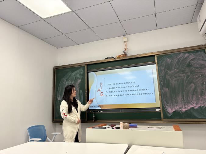 备课会上,谢周艳、李钟麟两位老师围绕《马克思主义基本原理》课程第三章第一节《人类社会的存在与发展》、第二节《社会历史发展的动力》进行教学设计展示。两位老师紧扣教学大纲,聚焦唯物史观核心知识点,从课堂导入设计、递进式问题链条构建、头脑风暴式教学、OBE成果导向教学落实等方面展开详细汇报,重点分享了“中国人口与生育政策变迁”“名字演变”“中国直播电商行业”“科技伦理”等贴近时代、贴近学生、贴近生活的教学案例,清晰呈现“问题引领、学理支撑、案例赋能、目标达成”的教学思路。与会教师认真聆听、深入交流,针对教学重难点解析、案例选用、课堂互动设计、逻辑衔接等环节提出优化建议,共同打磨教学流程、细化教学方案。