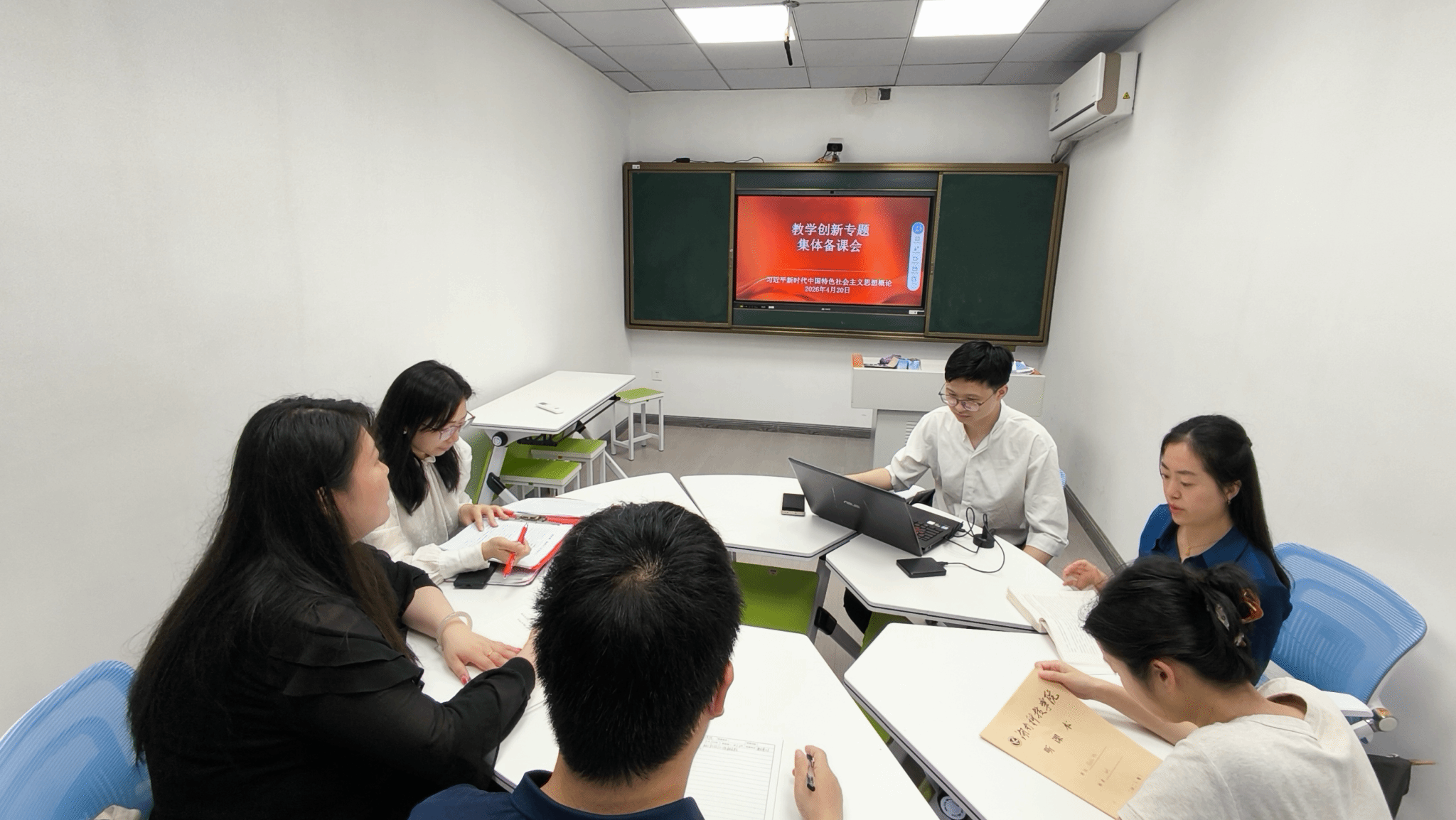 本网讯(通讯员 易佩)4月20日,“习近平新时代中国特色社会主义思想概论”教研室在鹤鸣楼106室开展教学创新专题研讨活动。教研室全体教师以“融合现代教学手段,深化思政课改革创新”为主题,通过案例展示、深度研讨、方向凝练三大环节,共探新时代背景下思政课教学提质增效的新路径,为思政教育注入科技活力与时代内涵,助力“大思政课”建设走深走实。
