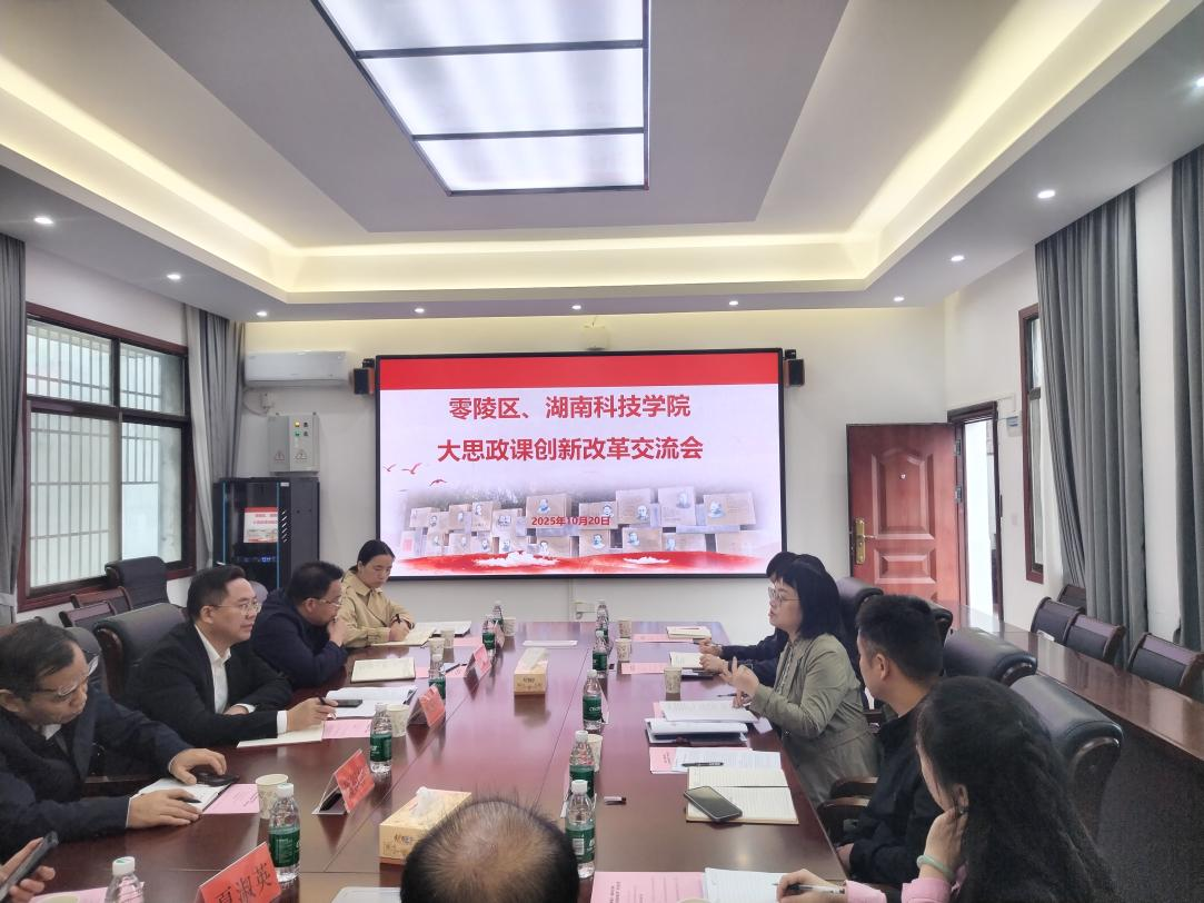 10月20日,湖南科技学院、零陵区“大思政课”创新改革交流会在我院鹤鸣楼405会议室召开。零陵区区委办常务副主任蒋国荣一行,湖南科技学院马克思主义学院院长廖雅琴、党总支书记高丹、副院长唐立及学院教师代表参会,双方围绕协同推进“大思政课”创新改革进行交流。