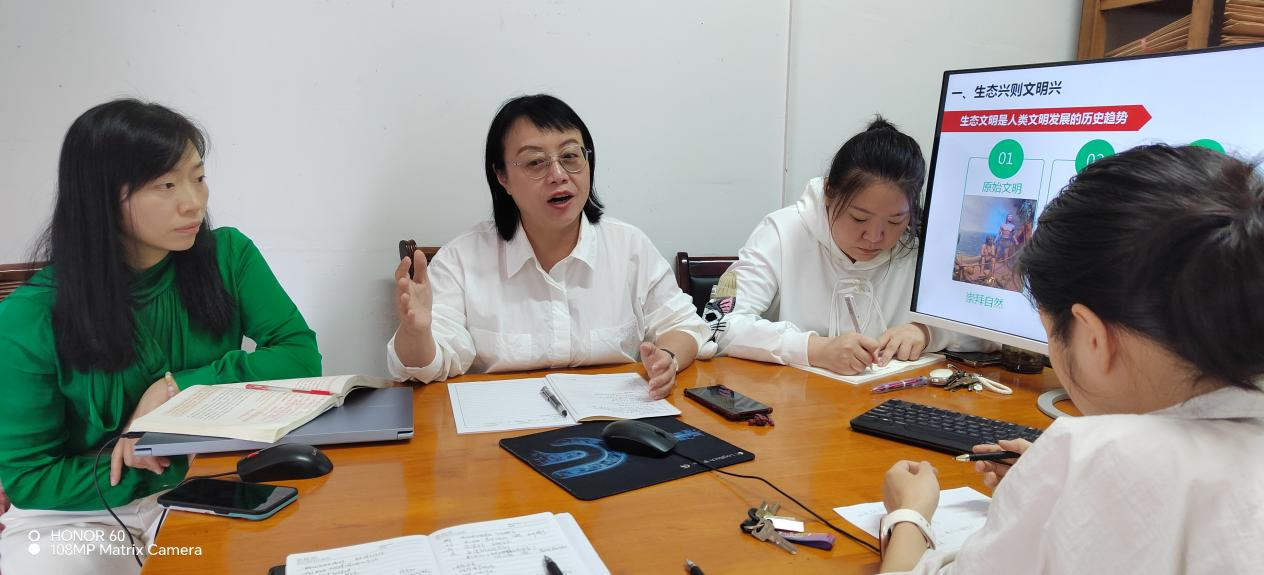 10 月 15 日上午,习近平新时代中国特色社会主义思想概论教研室全体教师在鹤鸣楼208室召开集体备课活动,围绕“建设社会主义生态文明”主题,通过说课展示、疑难问题研讨等形式深化思政课育人实效,会议由教研室主任陈小燕主持。