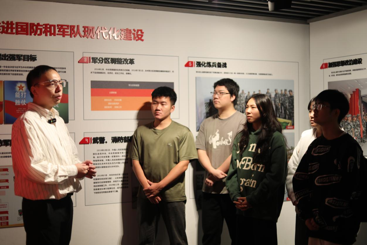 本网讯(记者 吴志伟 郭瑞)“这不是冰冷的文字,而是穿越时空的信仰对话!”11月1日上午,永州党史军事陈列馆“惊天动地”展厅内,思政 2301 班学生陈岳景凝视着玻璃展柜中泛黄的《红军长征过永州路线图》,手指不自觉地沿着红色箭头轻轻划过。当天,湖南科技学院马克思主义学院60余名师生走进这座“立体党史教科书”,通过“听讲解、观文物、悟精神、谈感悟”,让红色历史从文字变成可触可感的“活教材”,让青年学子在触摸真实历史中解码红色基因,在沉浸式体验中筑牢信仰根基。