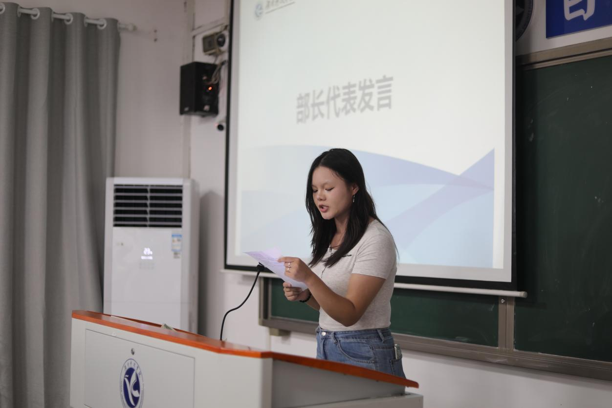 会上,曹惠如、吴志伟为上一届团学联干部颁发聘书,对其过往在团学联工作中取得的成效给予充分肯定。团学联执行主席毛梦琦以助力成员成长的 “三大法宝”为核心分享工作经验:一是秉持“知学、知思、知敬”的态度,夯实自身能力基础;二是坚持“务实、务细、务恒”的作风,做到真抓实干、善作善成;三是凝聚“同向、同行、同心” 的合力,强化团队协作效能。团校部部长谢何美围绕 “感恩、传承、同行”三个关键词,分享个人工作感受与思考。她表示,正是得益于学长学姐的悉心指引与工作铺垫,自己才能逐步成长,未来要在传承优良工作传统中积累经验、共同进步;各部门需在相互支持中碰撞新思路、激发新火花,形成工作合力。