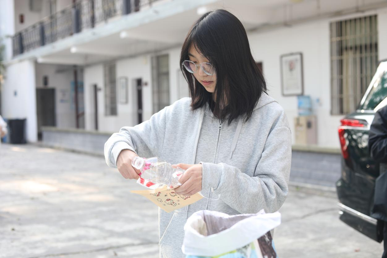 活动现场,废弃矿泉水瓶成了最抢手的“原材料”。大家发挥创意,通过裁剪、彩绘、装饰,让原本即将丢弃的塑料瓶焕然一新。随后,同学们随机抽取郁金香、向日葵、多肉、雏菊等“种子盲盒”,小心翼翼地填土、播种、浇水,还在花盆上写下对新芽、对自己的成长寄语。