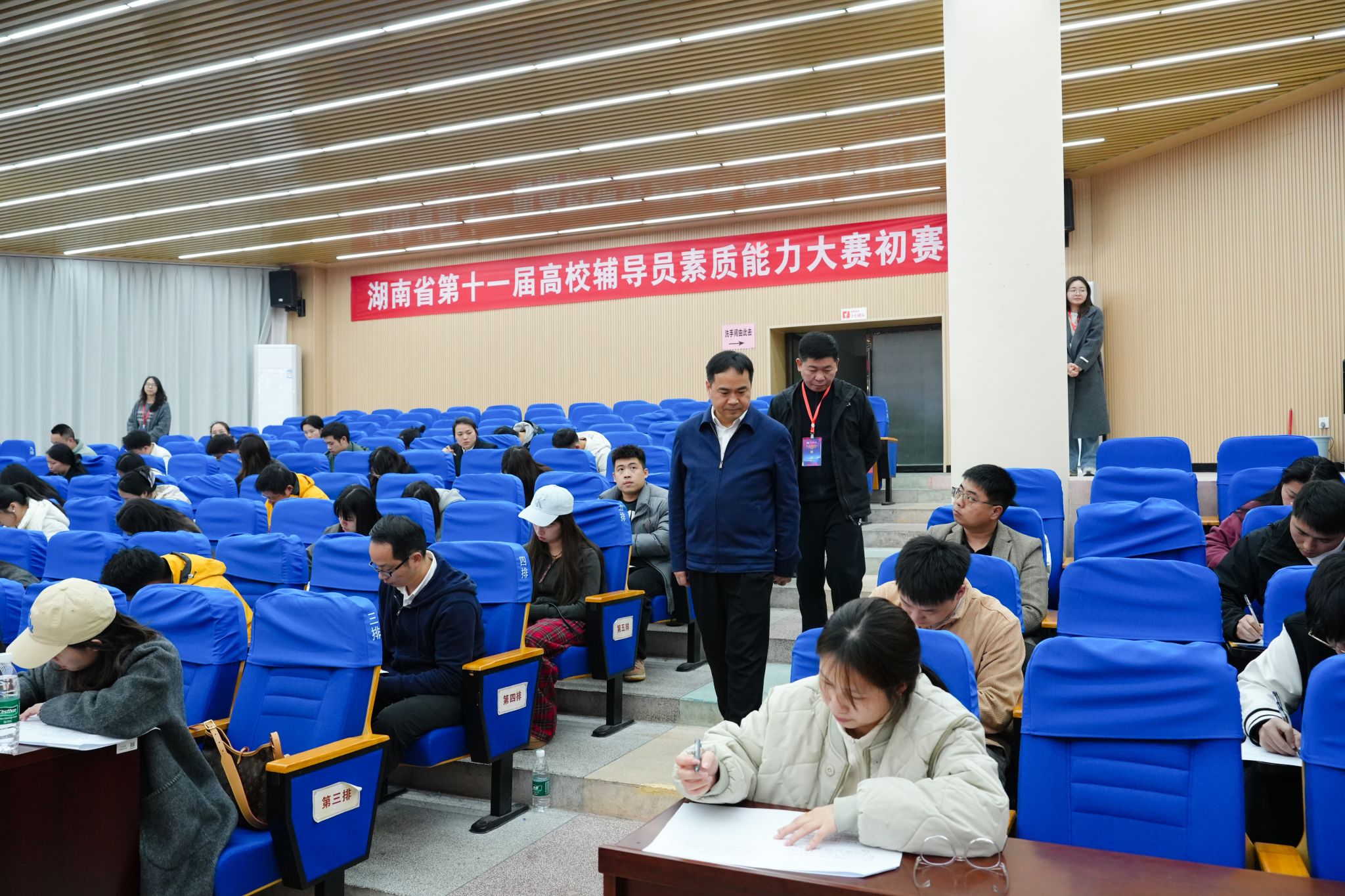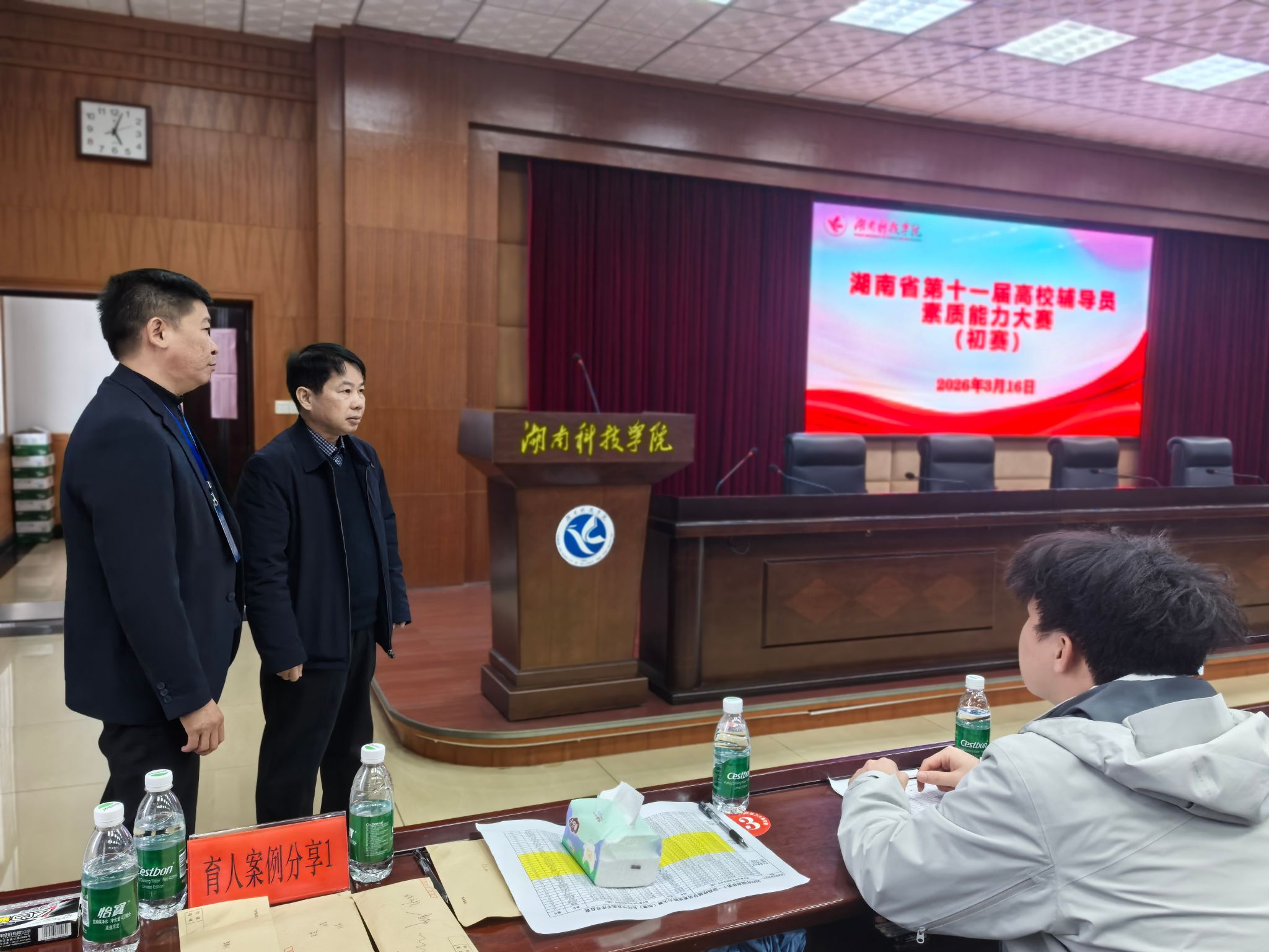 本次大赛严格对标湖南省第十一届高校辅导员素质能力大赛标准,设置基础知识测试、描述定位、谈心谈话、育人案例分享、案例研讨五个环节,全方位考察辅导员的理论功底与实践能力。参赛辅导员沉稳应战、各展所长,展现出扎实的专业素养与丰富的育人经验,在竞技交流中实现了能力的共同提升。