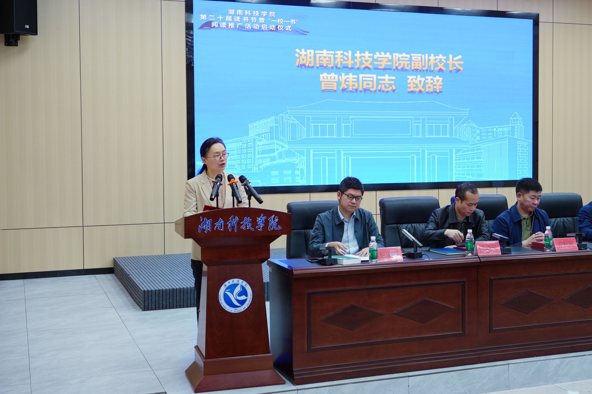 本网讯(记者 彭晥君 盖明皓 谷利梅)4月21日,我校举行第二十届读书节暨“一校一书”阅读推广活动启动仪式。校党委书记黄创霞,副校长曾炜出席活动。