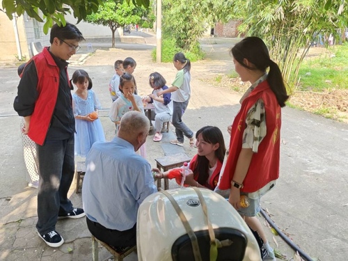 活动期间,志愿者将爱心物品派发给社区的老人与小孩后,积极主动与老人聊家常,带小朋友做游戏,帮助老奶奶收被子,喷洒除草剂,搀扶老人回家等。整个活动充满了欢声笑语,其中一位80多岁的老奶奶握着一名学生的手说:“有你们来看我们,我们好高兴!”。