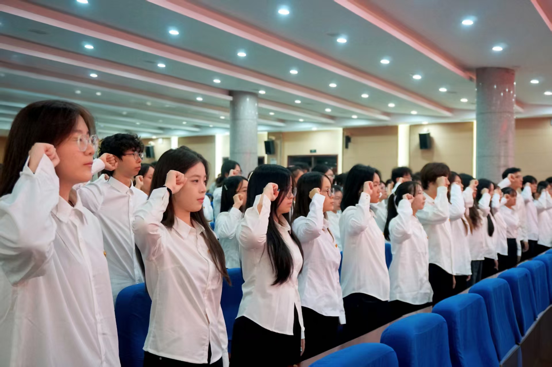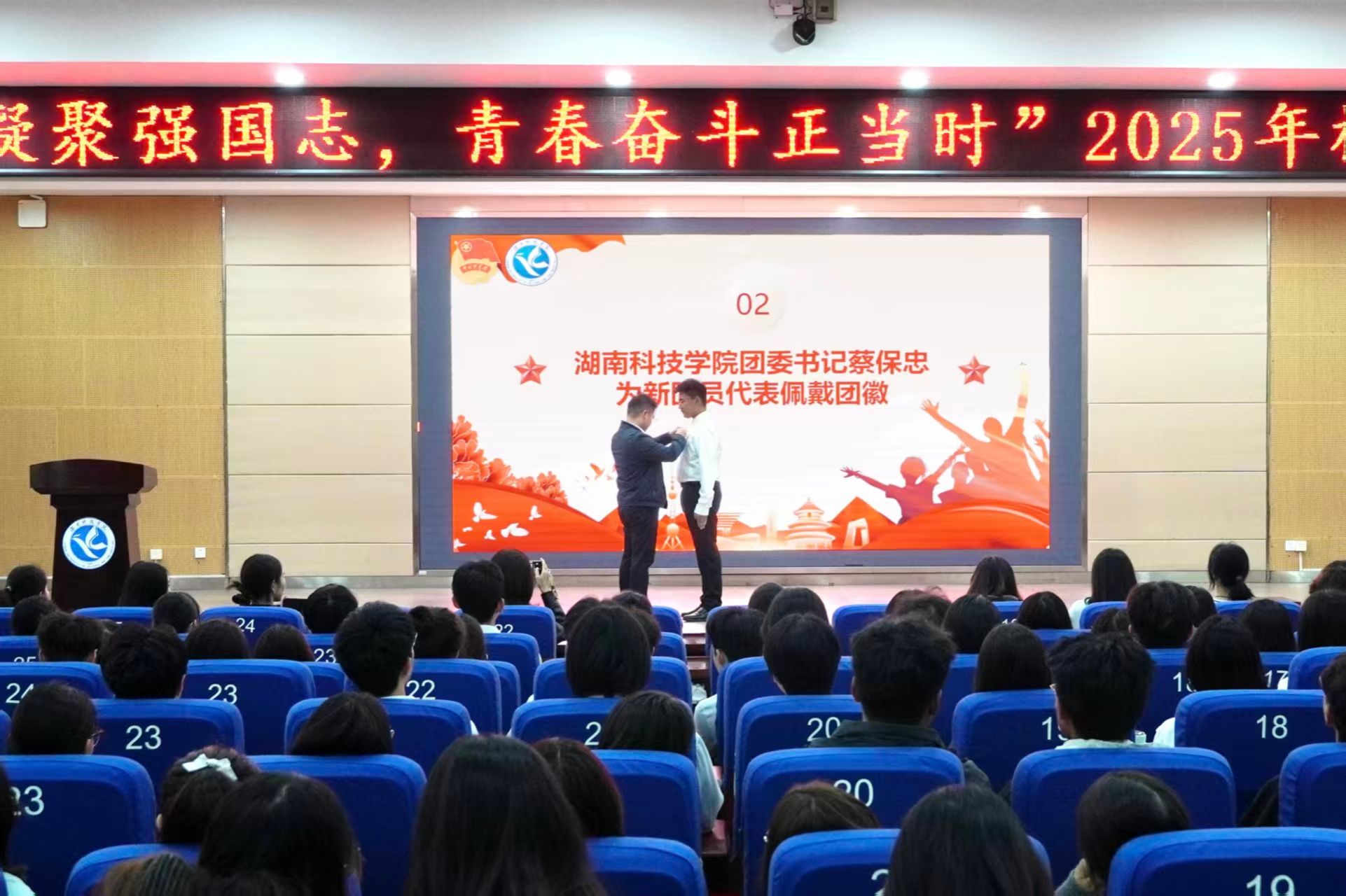 随后,湖南科技学院团委书记蔡保忠为新团员代表佩戴团徽,全体新团员铿锵有力地进行入团宣言,展现强国决心。马克思主义学院2402班谢何美同学《厚植家国情怀,强国复兴有我》主题团课,以家国情怀为切入点,以祖国发展历史为脉络,融入大学生生活点滴,与当代青年大学生共勉新时代的新要求,我们生逢盛世,不忘历史,努力为实现中华民族伟大复兴而团结奋斗。