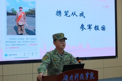 (本网讯:向诗颖)为厚植大学生国防观念,激发青年学子参军报国热情,近日,我校成功举办 “我的青春有戎光” 2025 年大学生国防主题教育暨征兵宣讲活动。全校 14 个学院的学子齐聚现场,共赴这场兼具家国情怀与青春热血的 “戎光之约”。
