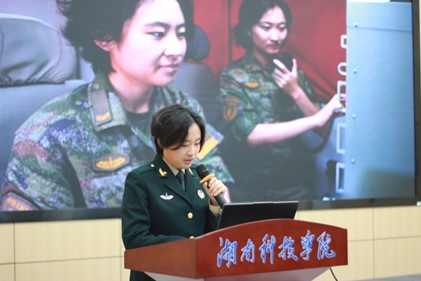 外国语学院齐思萱同学则带来火箭军 “巾帼篇章”,作为通信岗位 “听风者”,她以严苛准则练出 “指尖战斗力”,斩获多项荣誉,诠释了 “岗位就是战位” 的强军信念。